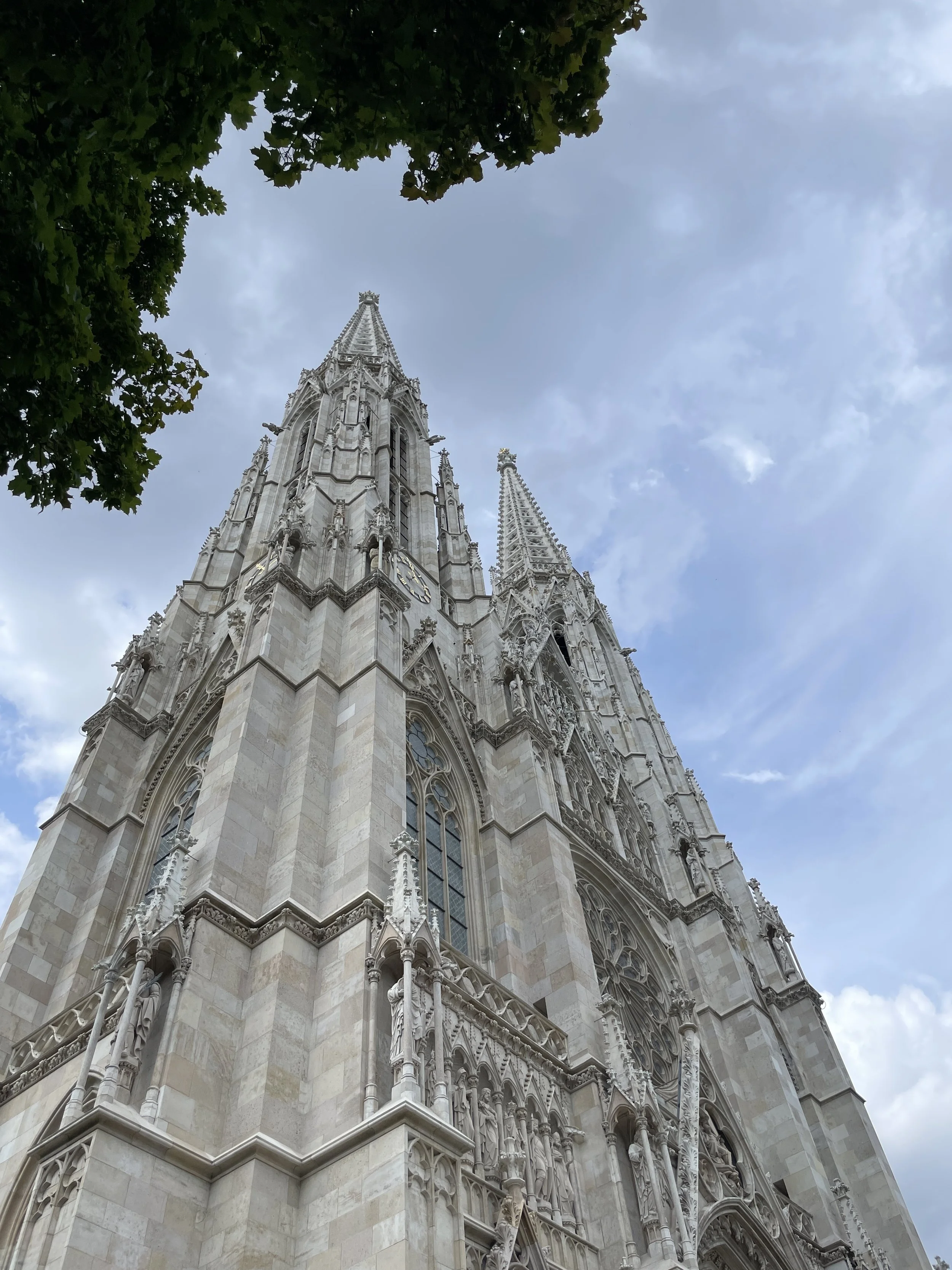 Looking to take advantage of the perfect weather, we made our way to Sigmund Freud park, a small, peaceful green space tucked at the base of the Votive Church. The park offered a quiet contrast to the city’s bustling streets, with benches shaded by trees and paths winding through flowerbeds. From there, the neo-Gothic spires of the Votive Church rose dramatically, its intricate façade catching the sunlight. Sitting for a moment in the park, we listened to a busker singing and playing guitar, the serenity of it all helping us to appreciate taking a leisurely pace.