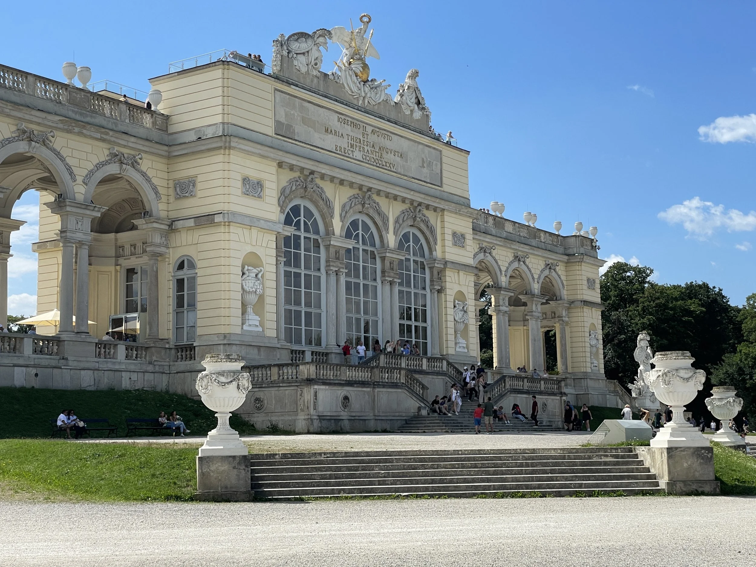 From there, the path climbed steadily toward the Gloriette, the arched hilltop monument built in 1775 as a symbol of Habsburg military triumph and as a kind of outdoor dining room for Emperor Franz Joseph. Today it’s mostly a viewpoint, and as we worked our way uphill, the palace slowly came into full view below us. Long, symmetrical, and impossibly grand. Each step higher felt like pulling back the frame on a postcard.