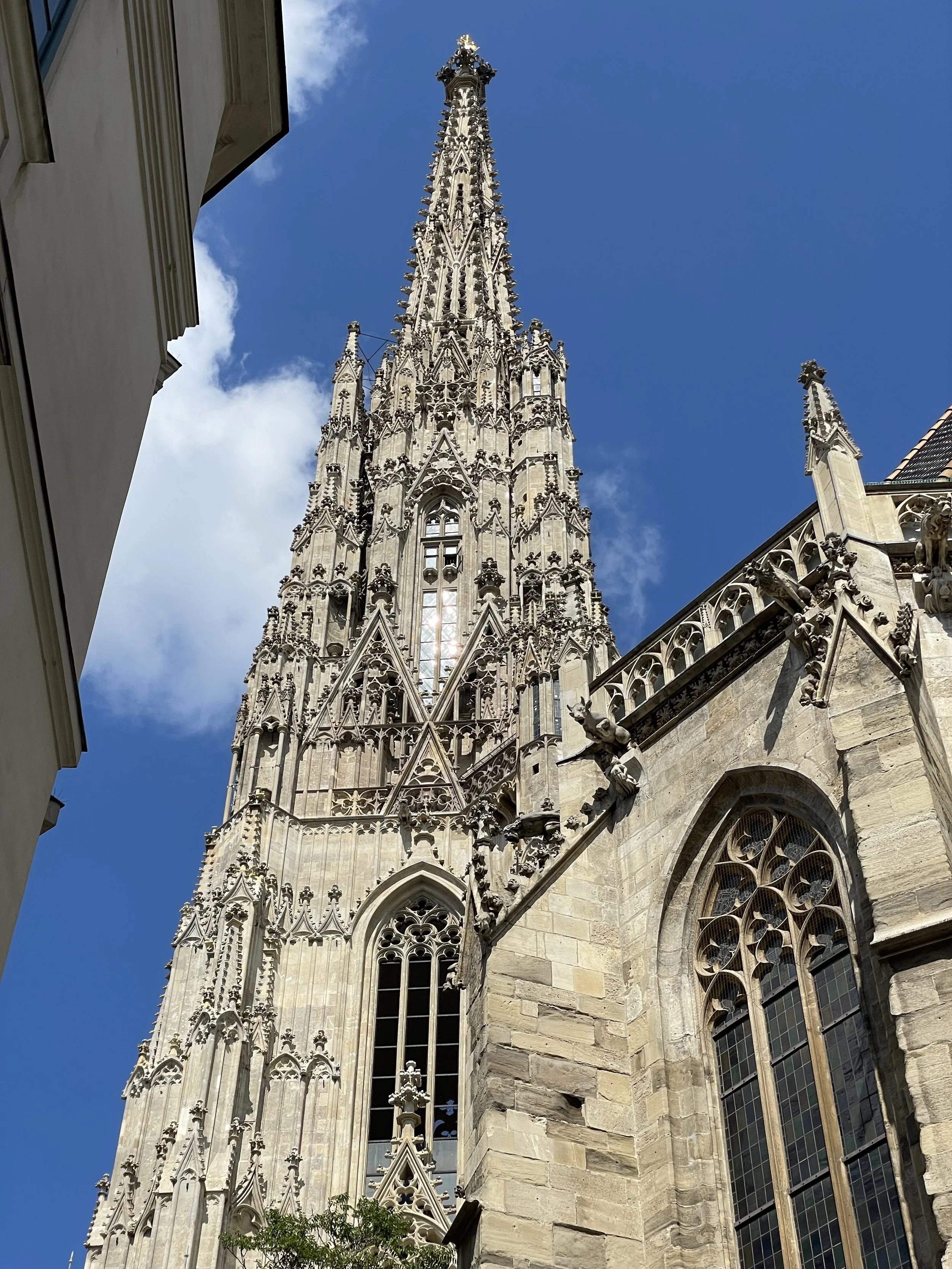 After a short walk to our hotel, we dropped our bags and went back to visit St. Stephen’s Cathedral. As one of Vienna’s most iconic Gothic landmarks, its history stretches back over 850 years. The site originally hosted a Romanesque church in the 12th century, but most of the structure visible today was built and expanded between the 14th and 16th centuries.