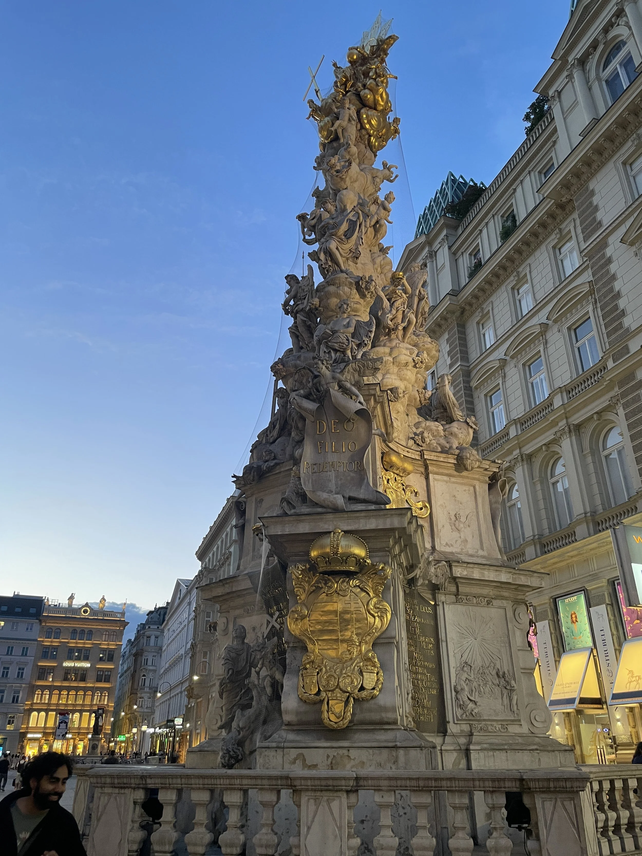 Today, Graben is lined with baroque buildings, luxury shops, and ornate fountains, including the famous Plague Column (Pestsäule), a dramatic Baroque monument erected in 1679 to commemorate the victims of the Great Plague. The street is was lively: outdoor cafés spill onto the cobblestones, creating a vibrant urban atmosphere.