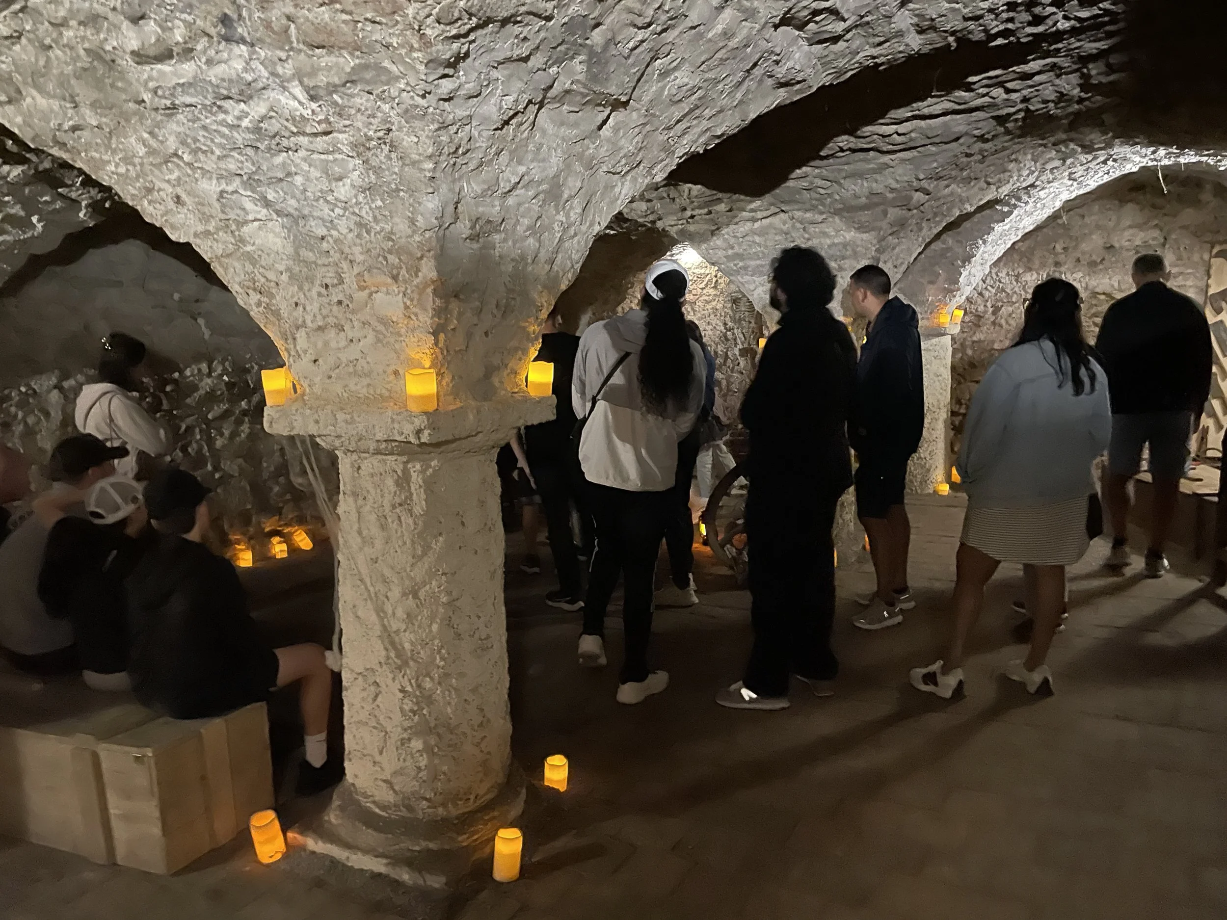 The tour culminated in an underground section of the city, accessed through a narrow stone stairway that led beneath the cobblestones we had walked on earlier. Down there, the air was cooler and damp, and the city life continued above.