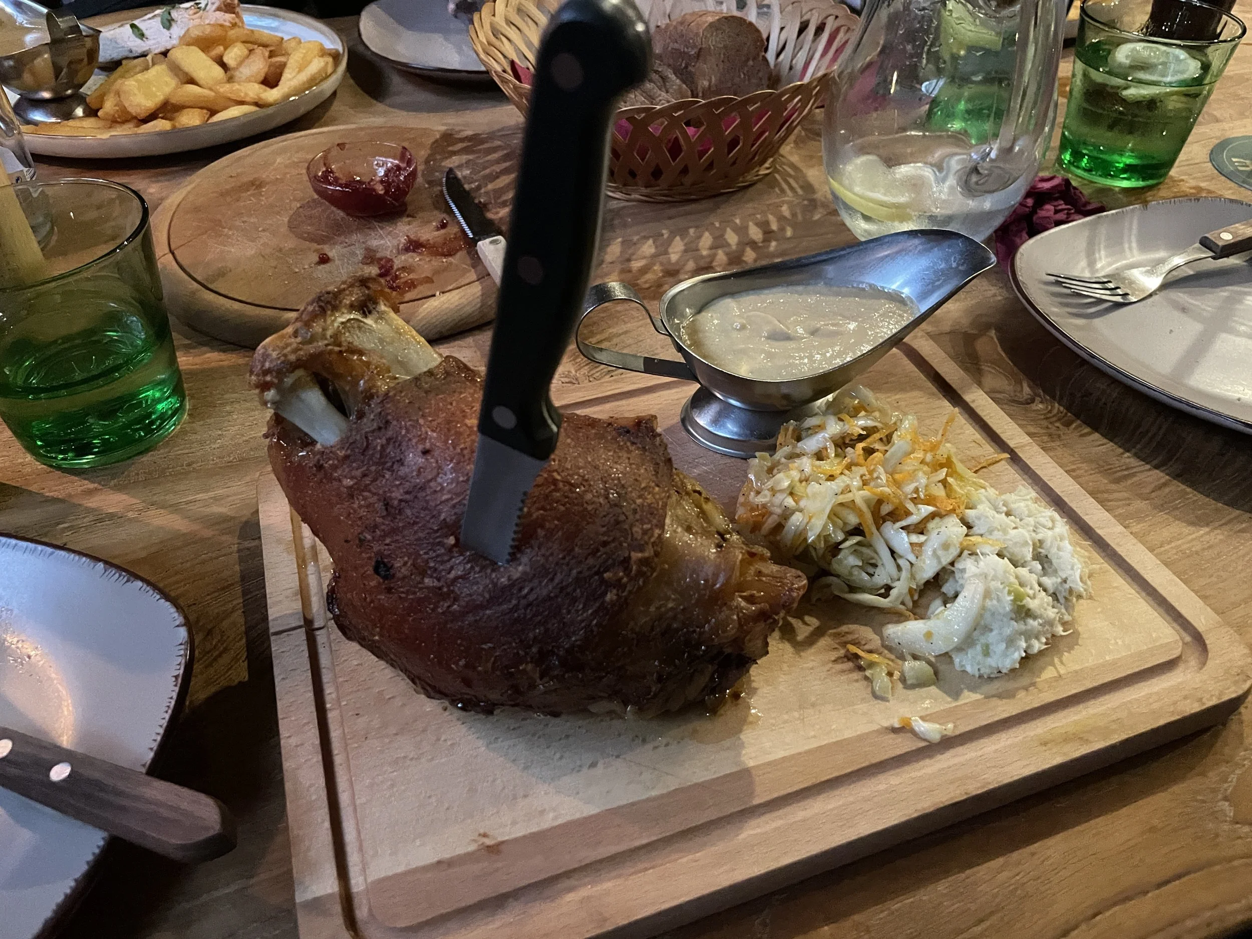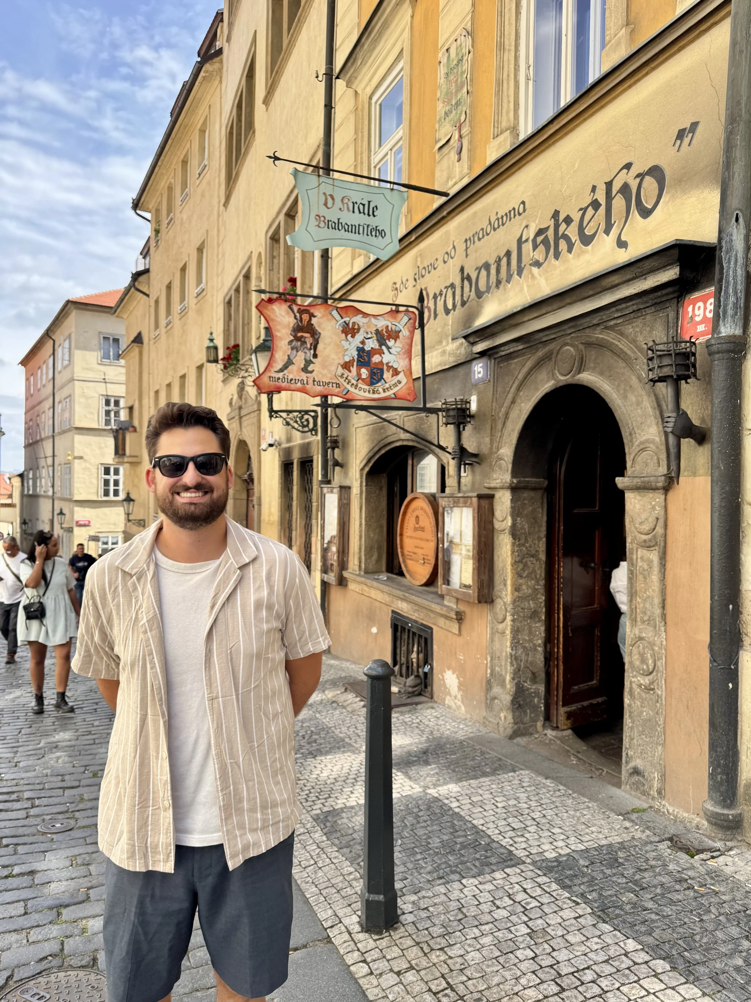 Walking down and out of the castle walls, we walked back across the St. Charles Bridge towards Old Town. We stopped for a bite to eat at U Pivrnce, enjoying some traditional dishes surrounded by walls filled with drawings from Petr Urban, a well‑known Czech illustrator, cartoonist, and former Olympic luger.