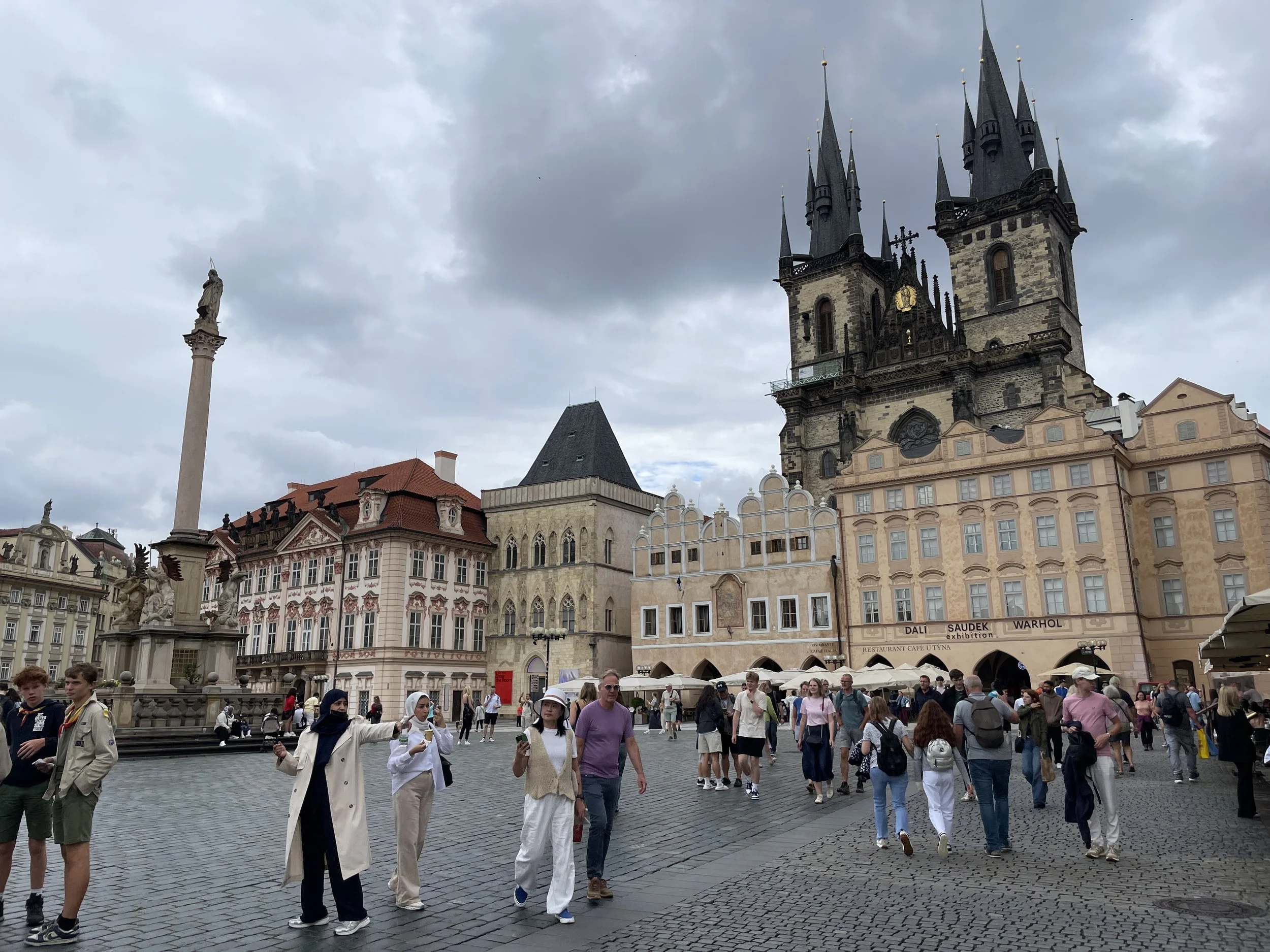 Waking up bright and early (just kidding, waking up around 2 p.m.) we started the drizzly day by walking to Old Town Square, famous for its Astronomical Clock.