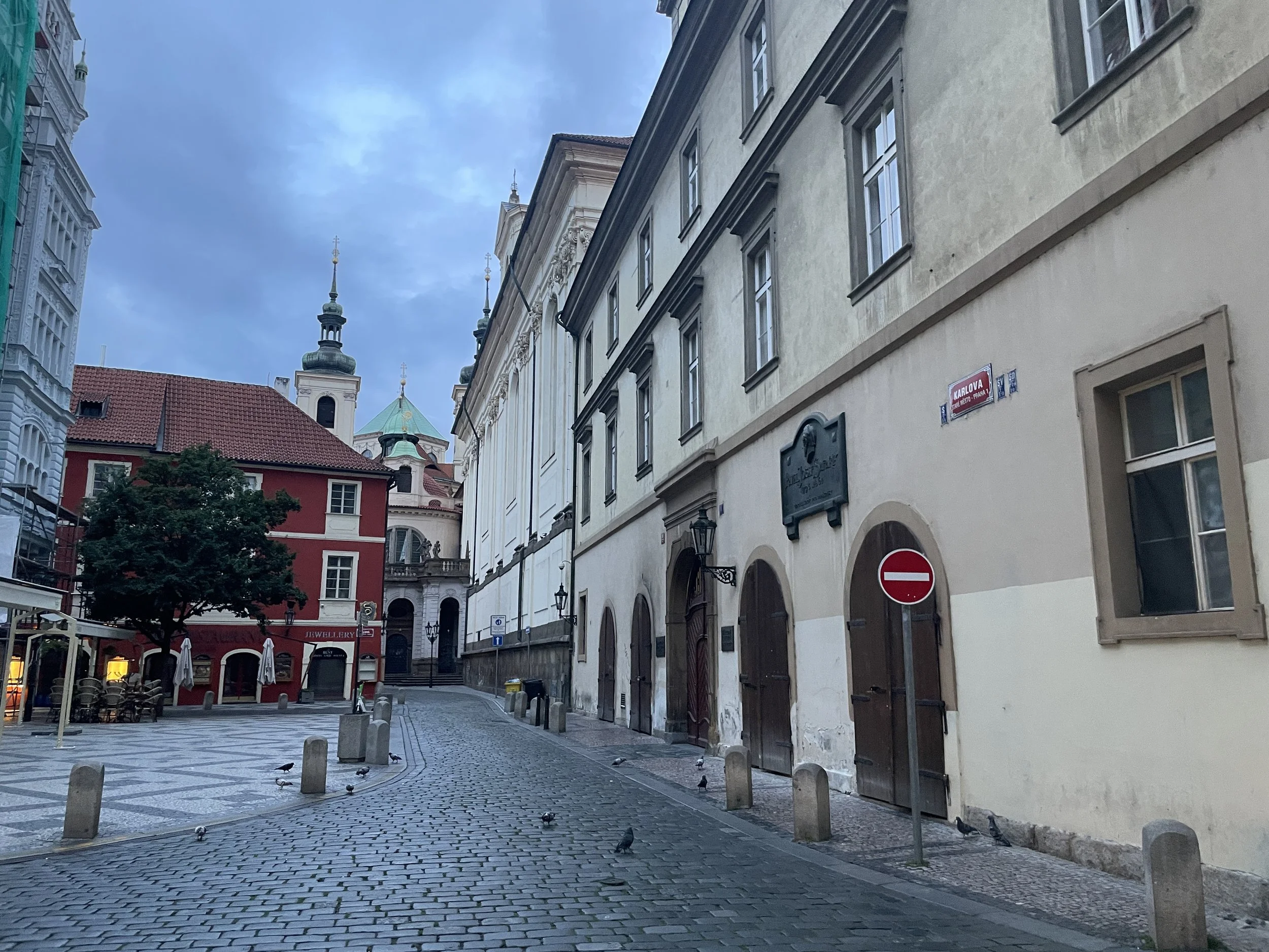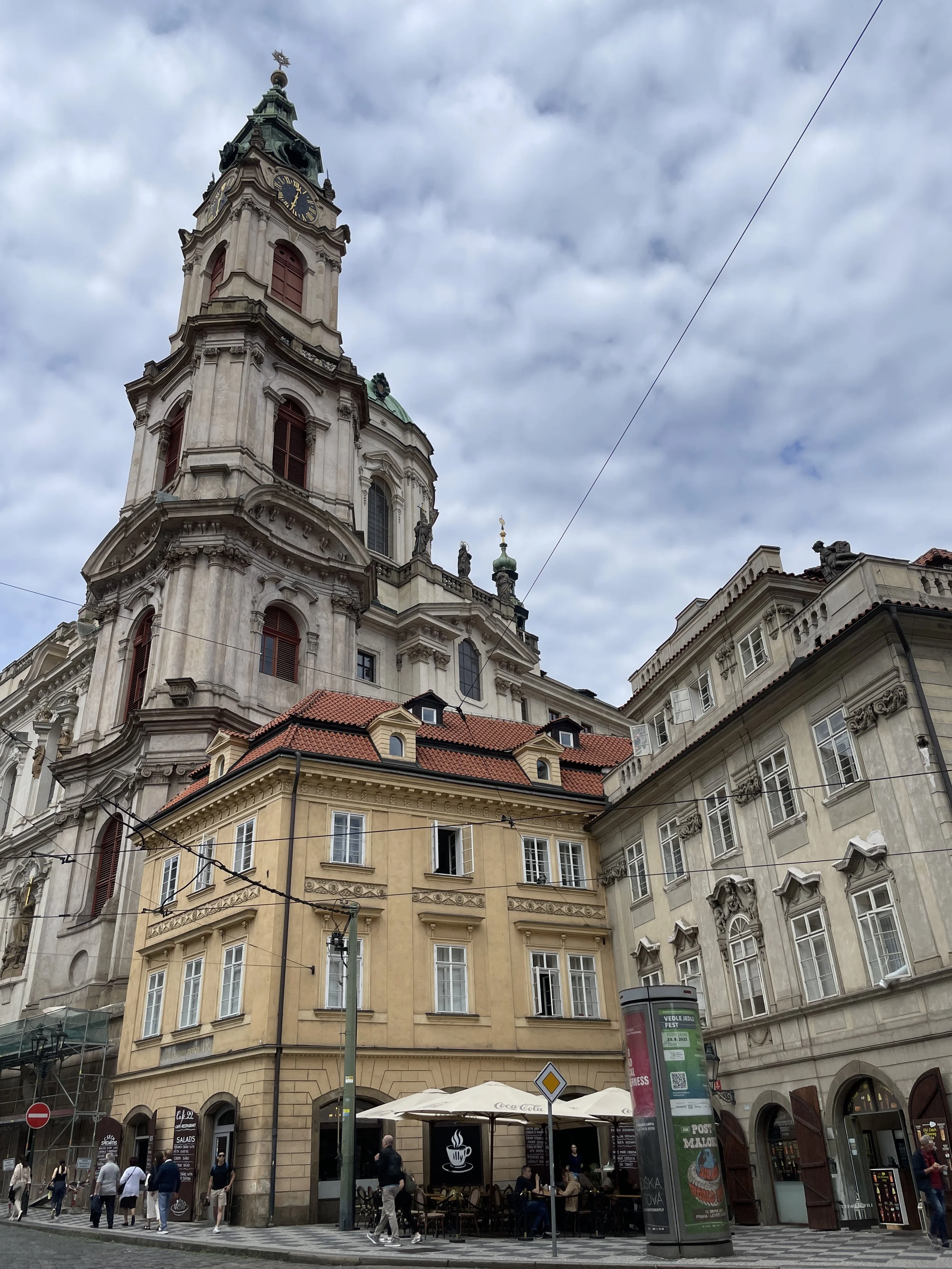We stopped for breakfast at Cafe Savoy, first opened in 1893 as an elegant way to start the day. High ceilings, ornate moldings, and rows of vintage chandeliers give it a formal elegance.The menu is a careful mix of French‑style breakfast dishes, Czech classics, and decadent desserts. It was a departure from the vibe of Dog Bar the night before- cultural whiplash at its finest.