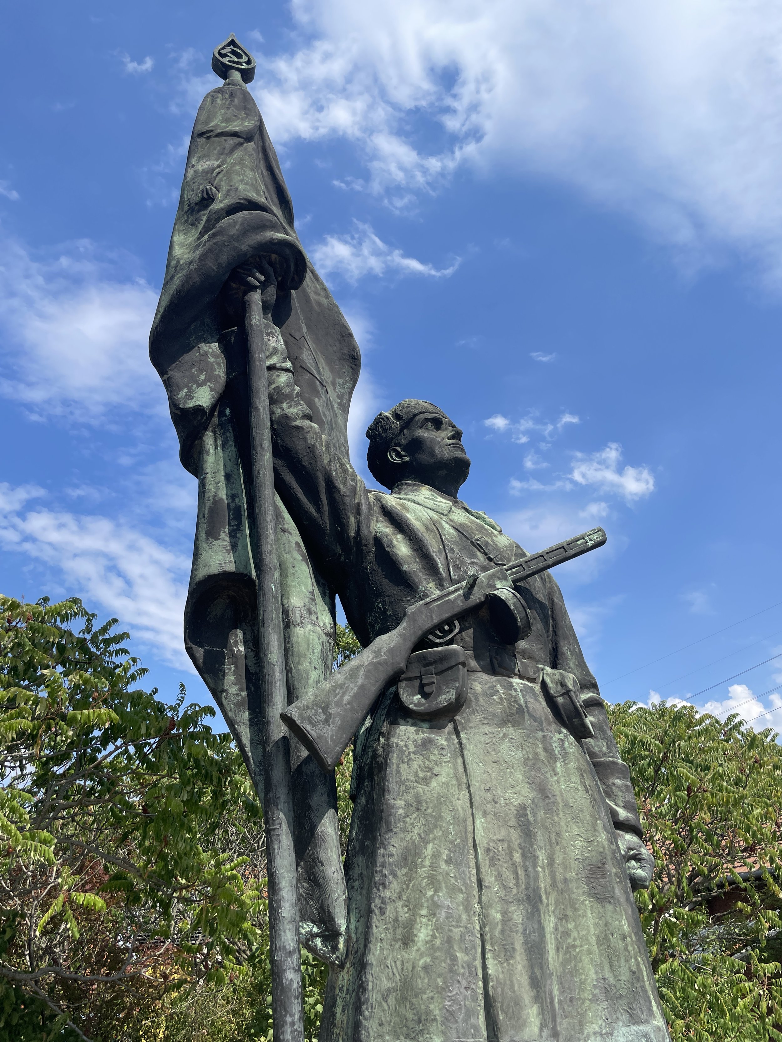 Inside the park, dozens of massive statues stand frozen in time. From Lenin to individual soldiers, the sculptures convey a variety of themes and messages, from authority and progress to heroism and solidarity. In the distance, a thunderstorm was brewing, adding a dramatic backdrop to the already imposing figures. We spent some time wandering around the quiet park before heading back into the city.