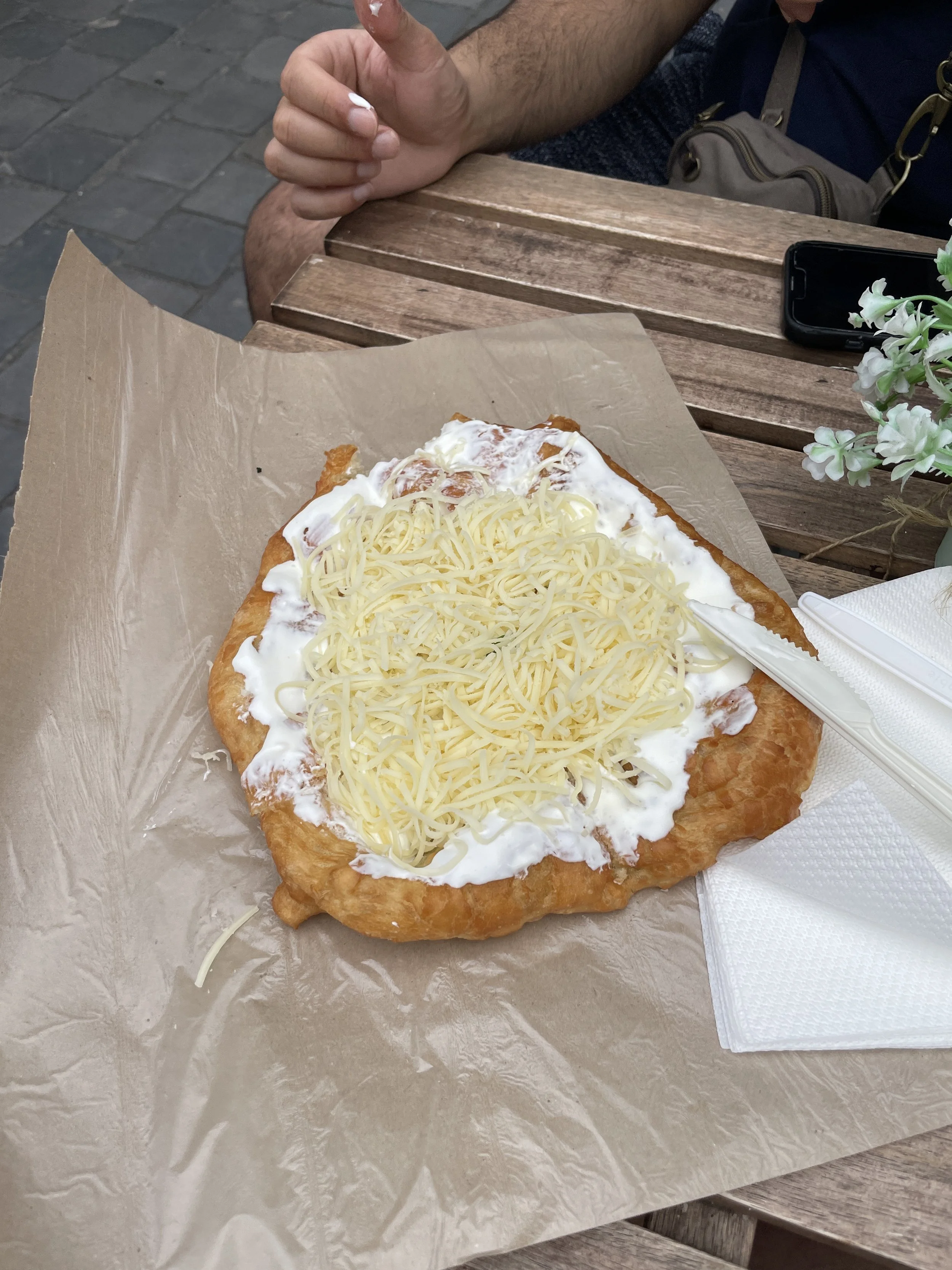 Late into the evening, as we were making our way back to the hotel, I finally tried Hungarian Lángos: a deep-fried flatbread, crispy on the outside and soft on the inside, traditionally topped with garlic, sour cream, and grated cheese. I simply don’t have the words to describe how much I love this dish. I ate it everyday we were in Hungary, and I’d eat it every day at home if I could.