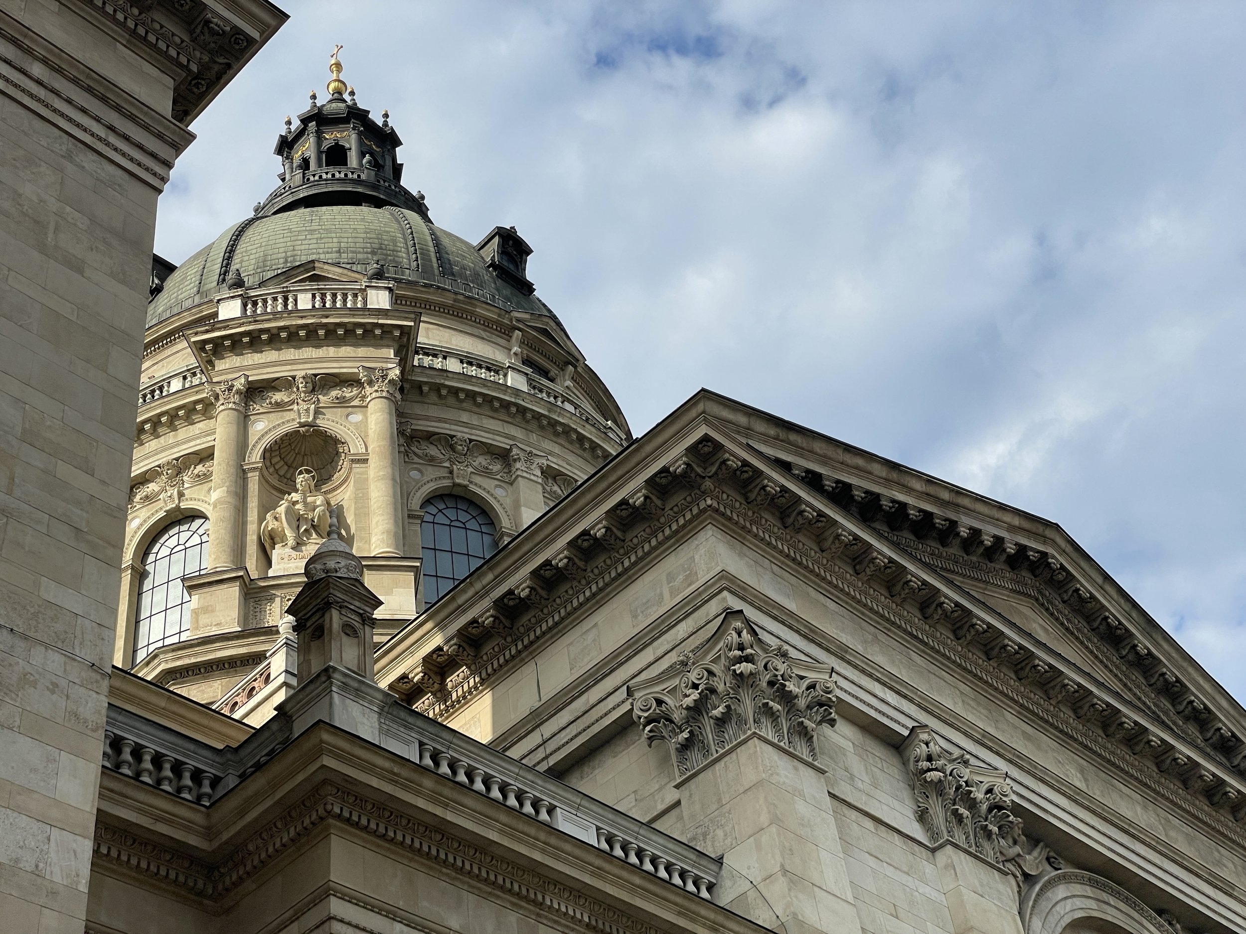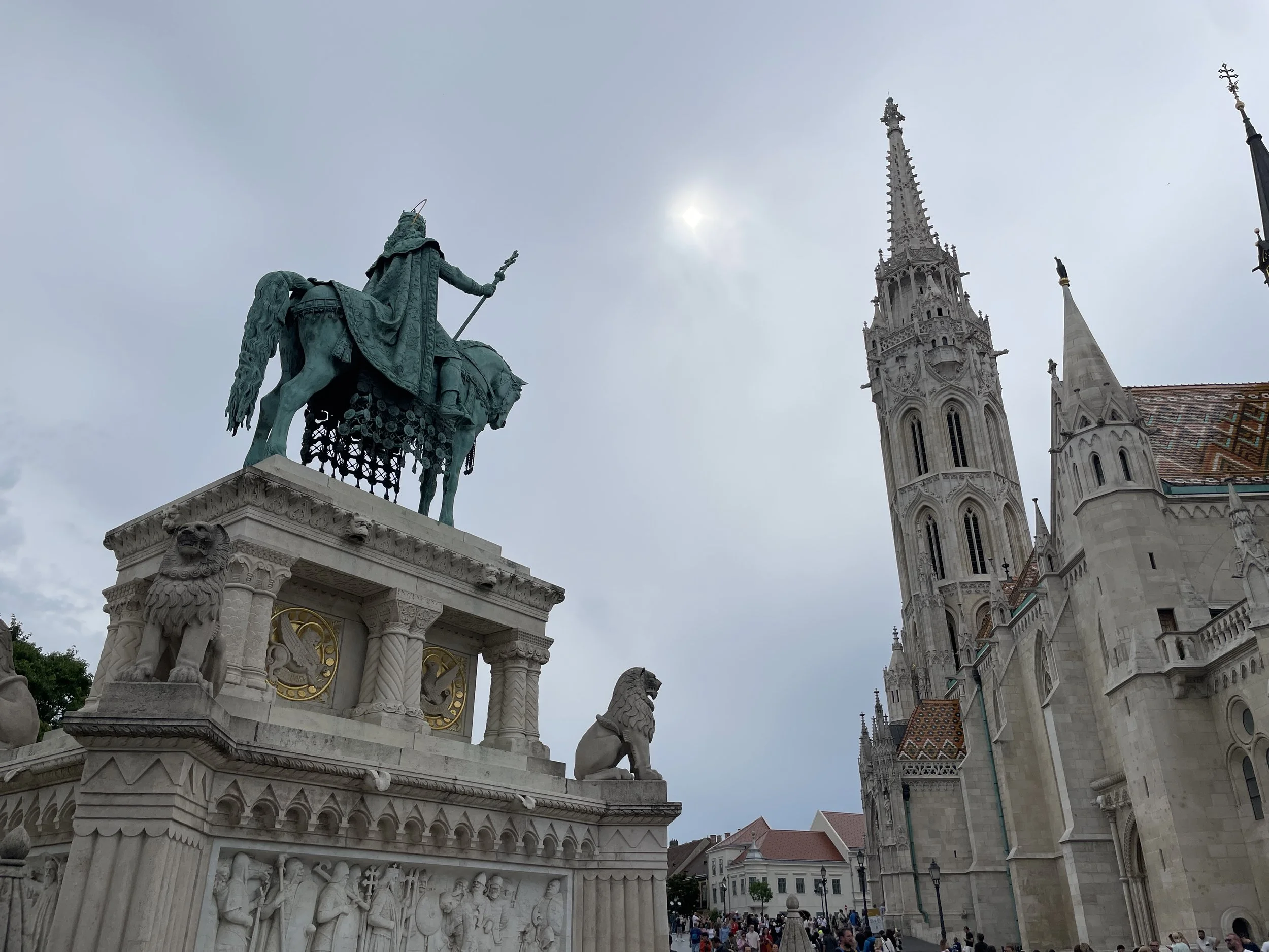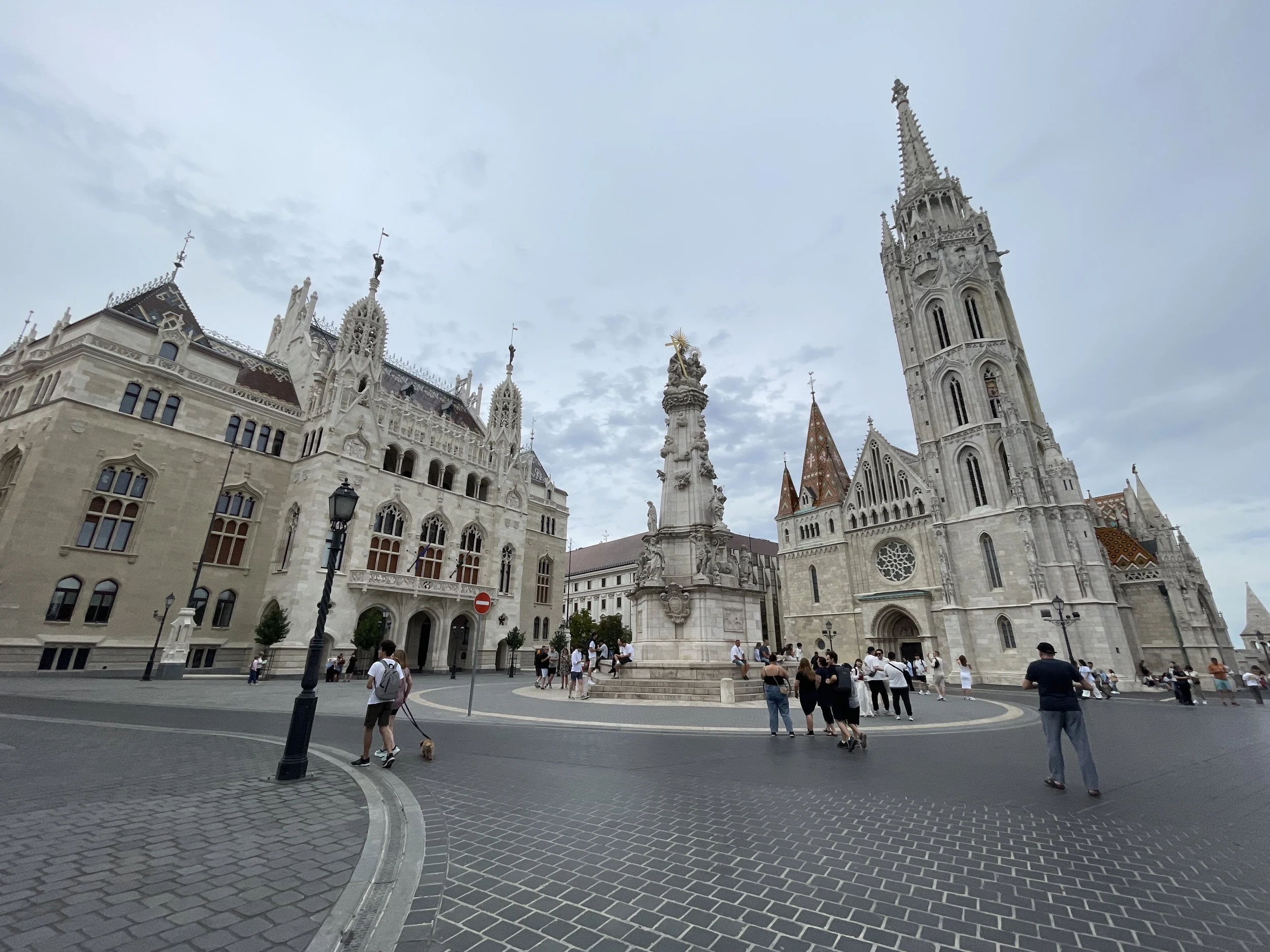 Outside the Labyrinth, overcast clouds hung overhead from storm the night before. We made our way to Matthias Church, a striking Gothic structure with a history stretching back to the 14th century. The church has been the site of royal coronations and significant historical events over hundreds of years.