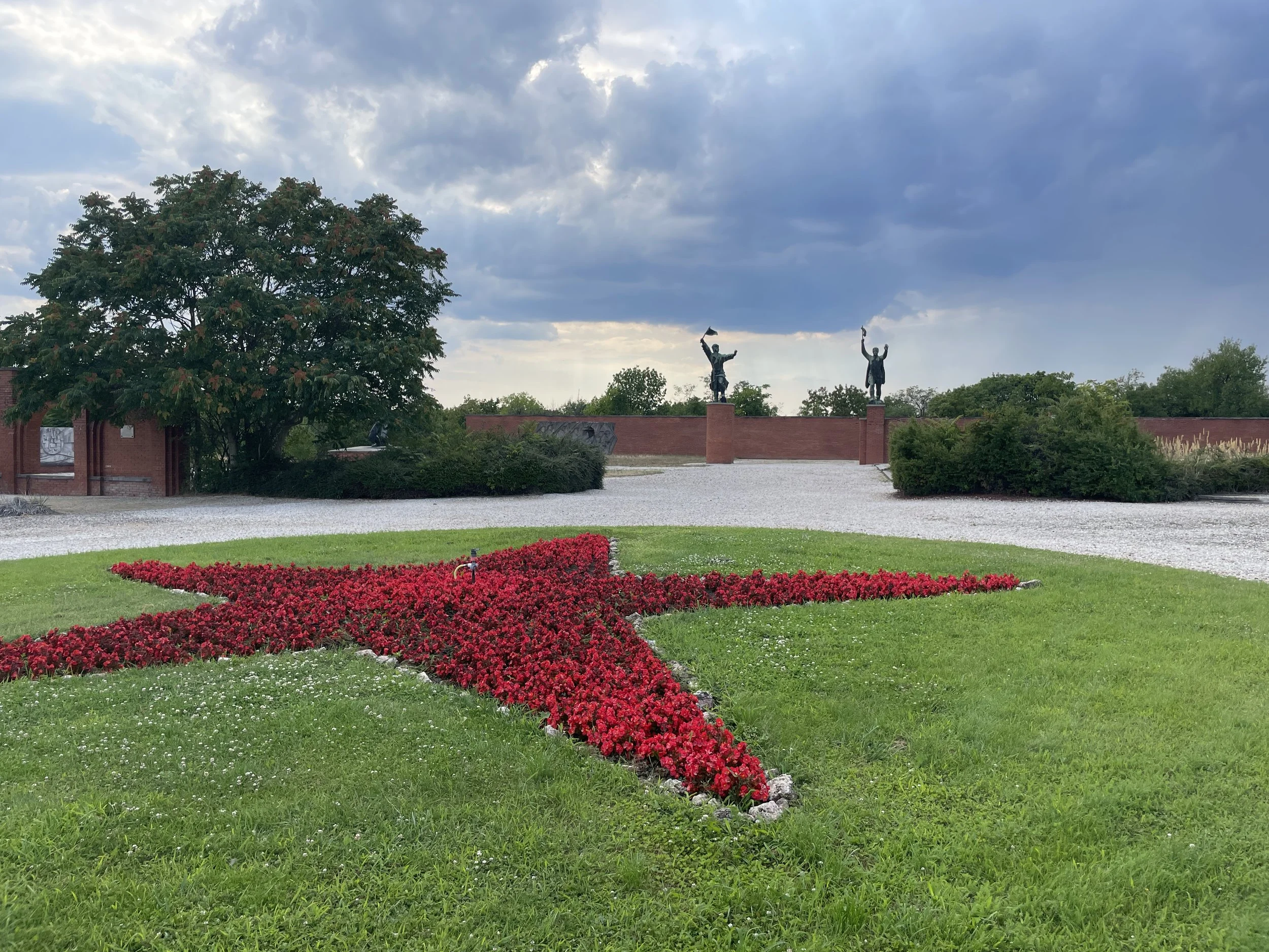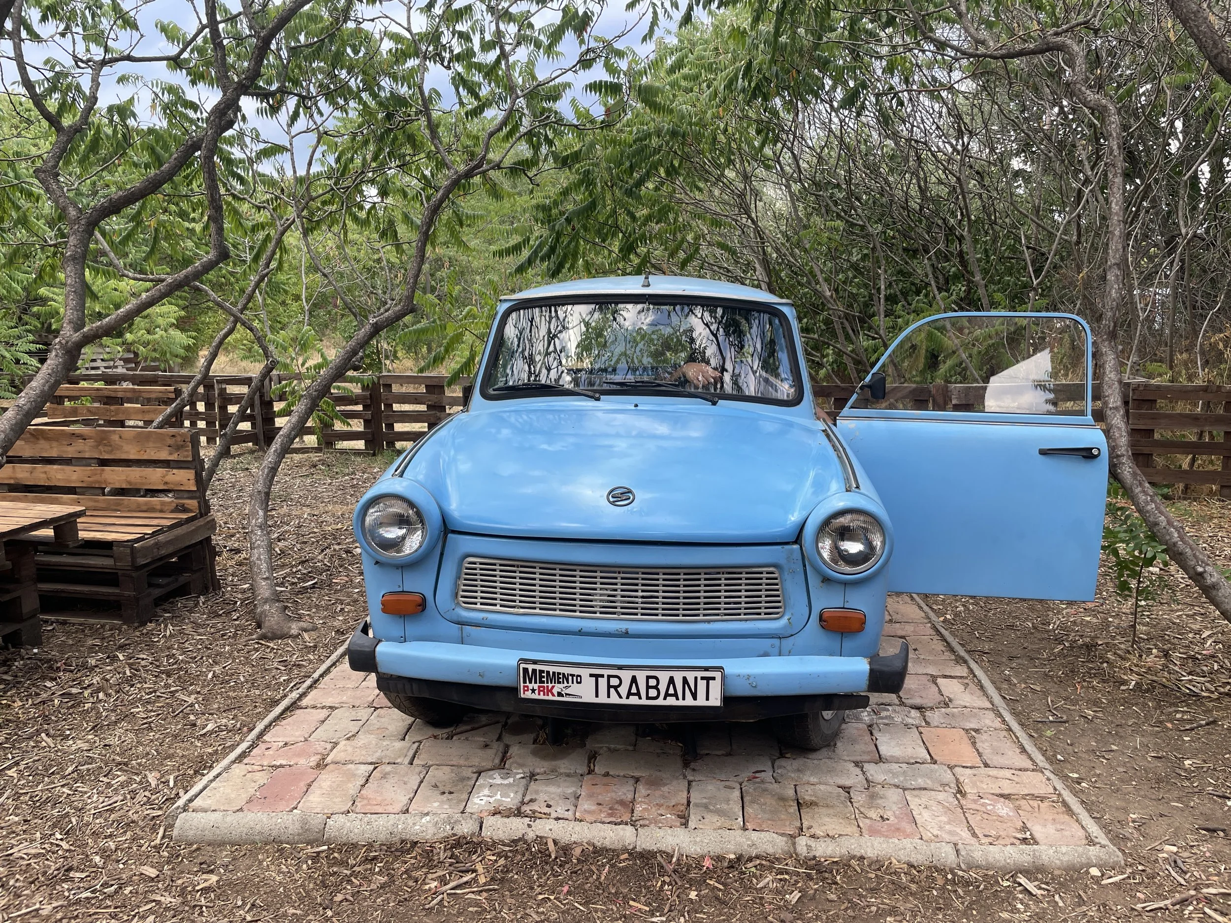 Winding through quiet country roads, we were eventually dropped off at the entrance to the park- being one of the only few people in the massive field. Immediately, we saw onr of the most iconic and striking exhibits at Memento Park: the giant pair of Stalin’s boots. These enormous bronze boots are all that remain of a former full statue of Stalin that once stood in Budapest.