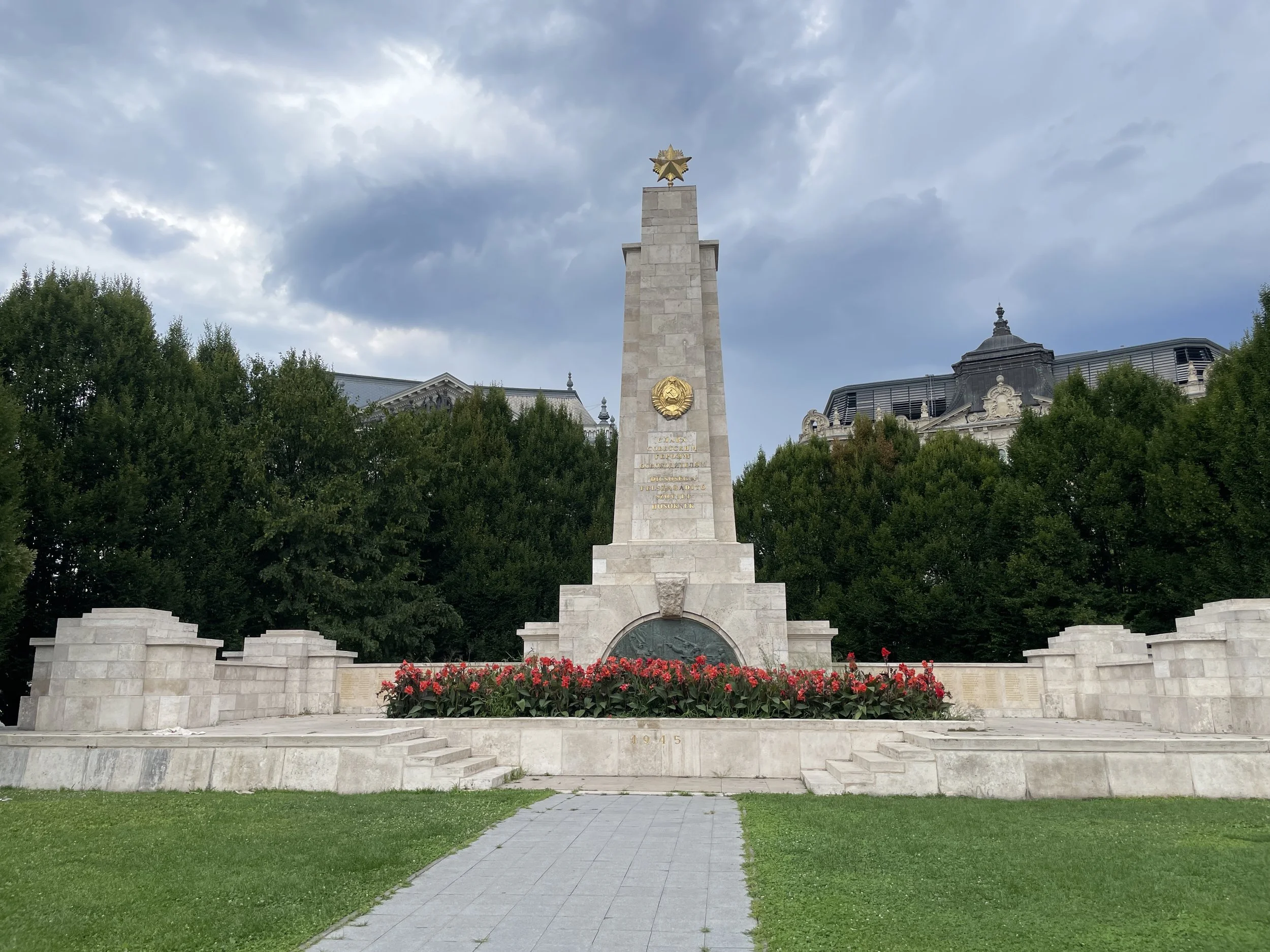 Our cab dropped us off at Liberty Square, a large, open plaza in the heart of Budapest. Dominating the space is the Monument to the Soviet Liberation of Hungary, erected to commemorate the Red Army’s role in driving Nazi forces from the city in 1945. The monument features towering figures of soldiers and civilians, holding banners and rifles, with an inscription thanking the Soviet forces.