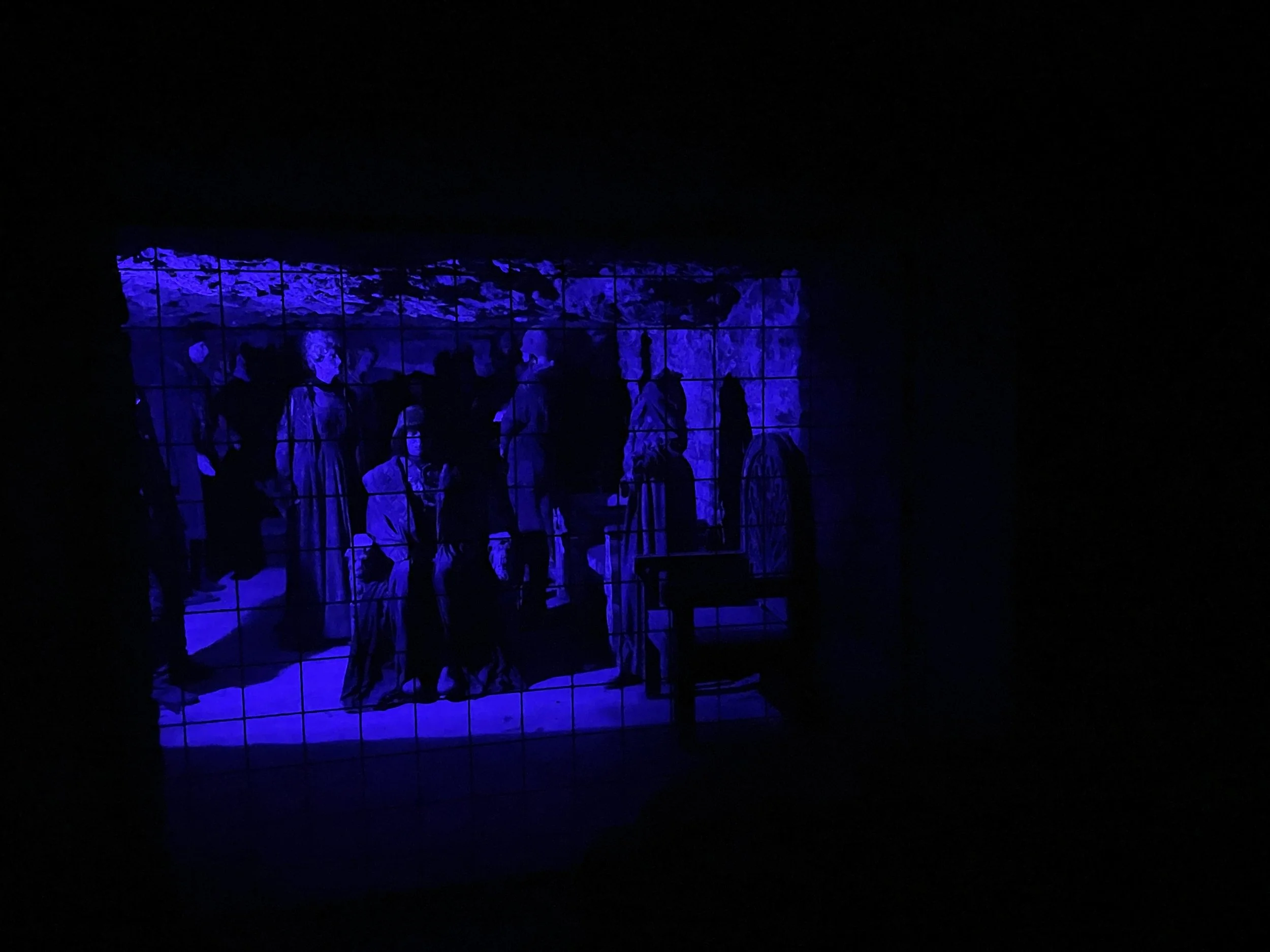 One section of the labyrinth was labeled “the Maze of Darkness”: a pitch-black passage with no lights at all. The only guide through the winding path was a thin rope stretched along the walls. Moving through it, the echoes of footsteps and faint ambient sounds made the experience both disorienting and immersive, a plunge into darkness within the historic underground tunnels.