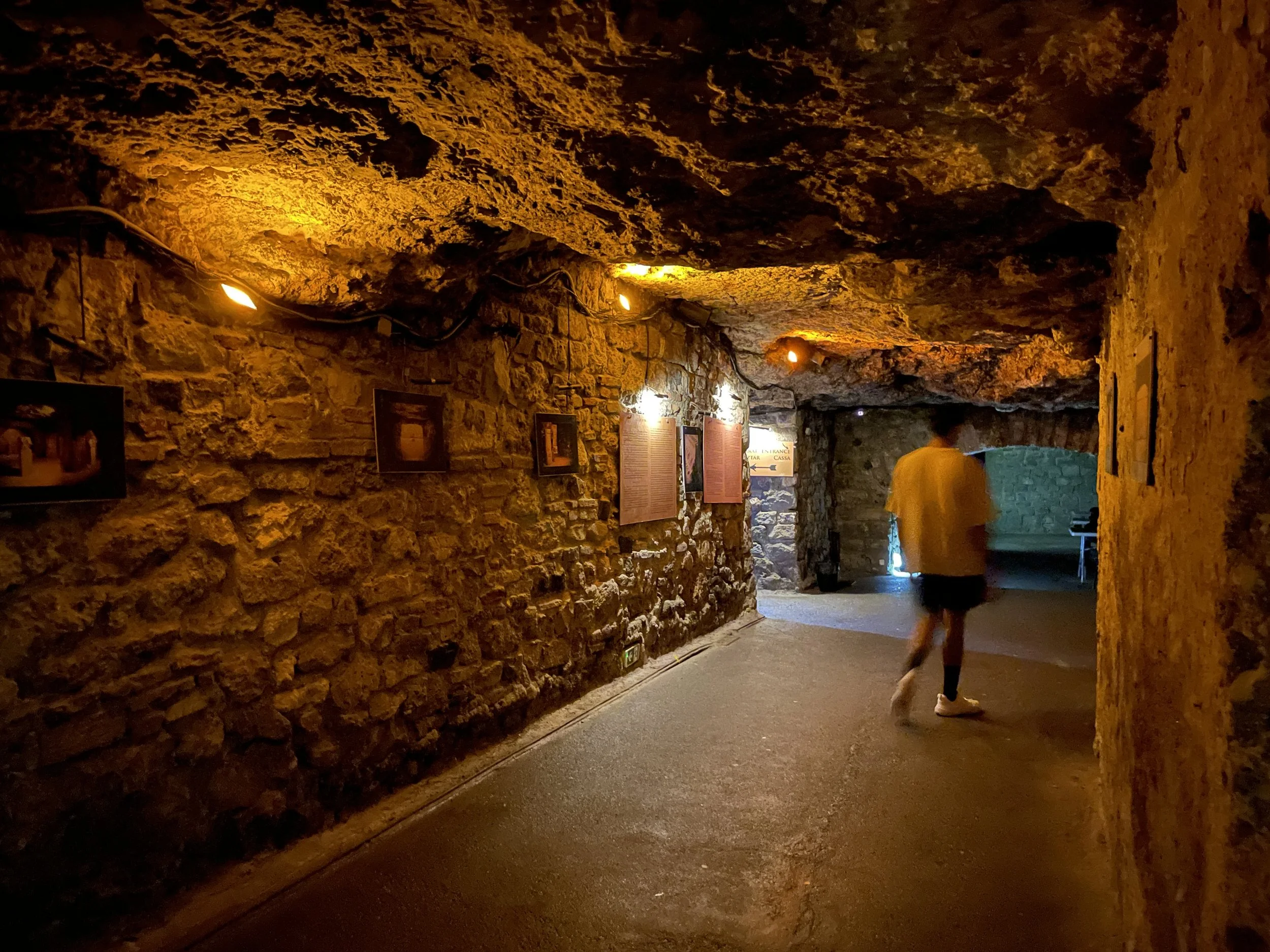 Winding up a steep, forested path, we eventually reached the top, where the trail led through the Castle Hill neighbourhood into the Labyrinth of Buda Castle. This underground network of tunnels and chambers stretches beneath the castle hill, with origins dating back to medieval times, when it was used for storage and military purposes.