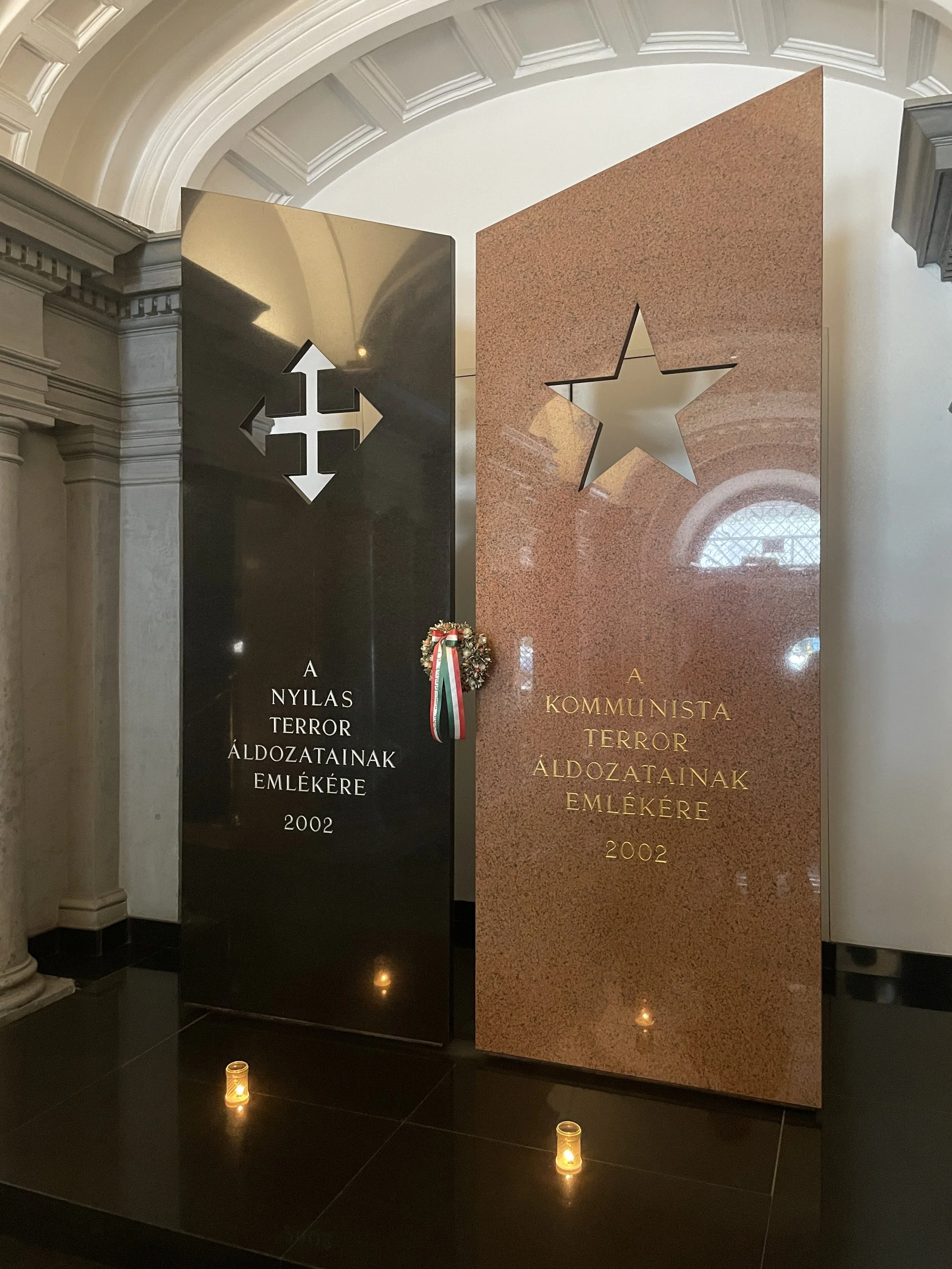 After breakfast, we visited the House of Terror Museum, located in the former headquarters of both the Arrow Cross Party and later the ÁVH, Hungary’s communist secret police. The museum documents Hungary’s 20th-century history under both the Nazi-aligned Arrow Cross regime and the postwar communist government, with exhibits detailing political organization, law enforcement, and the ways each regime operated. The displays provide a factual overview of administrative structures, archival records and historical artifacts that illustrate these periods.