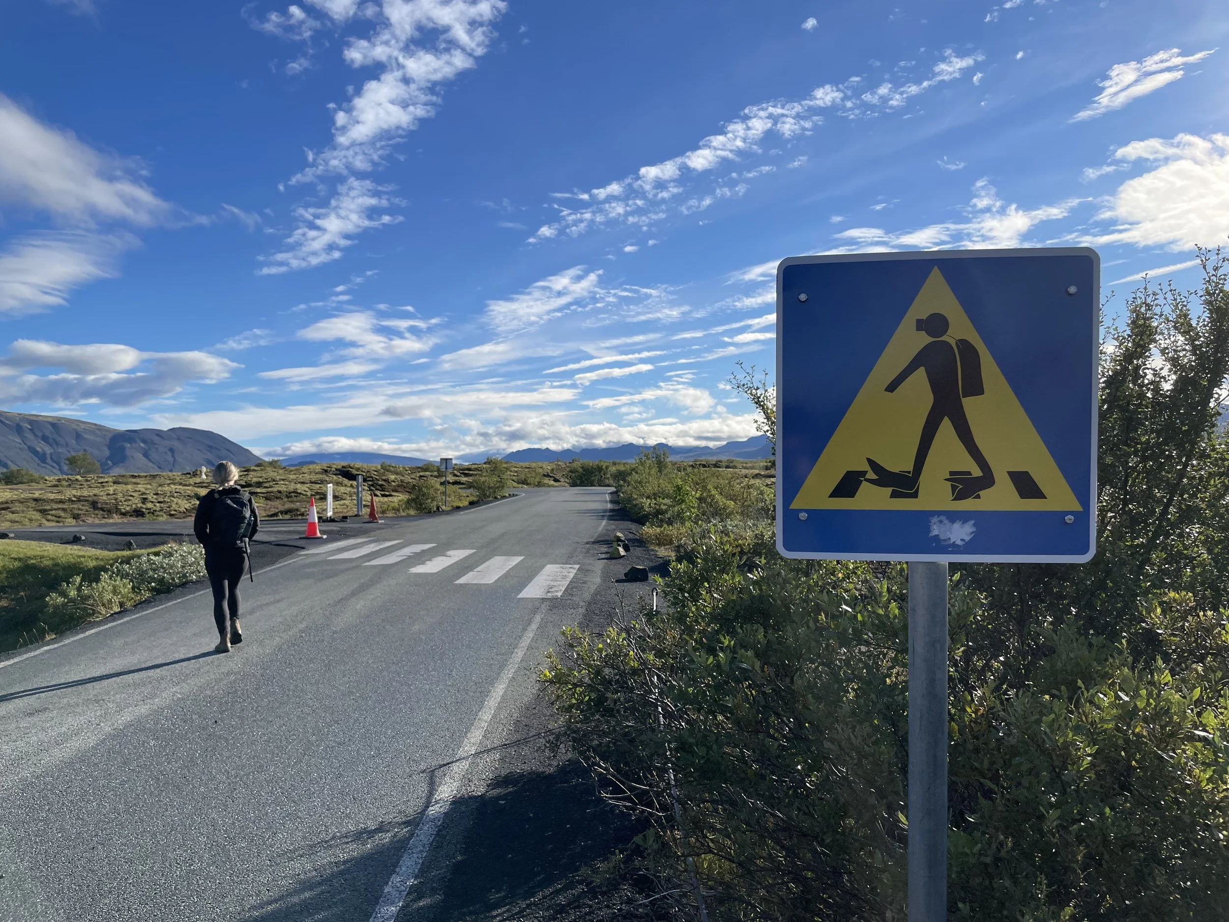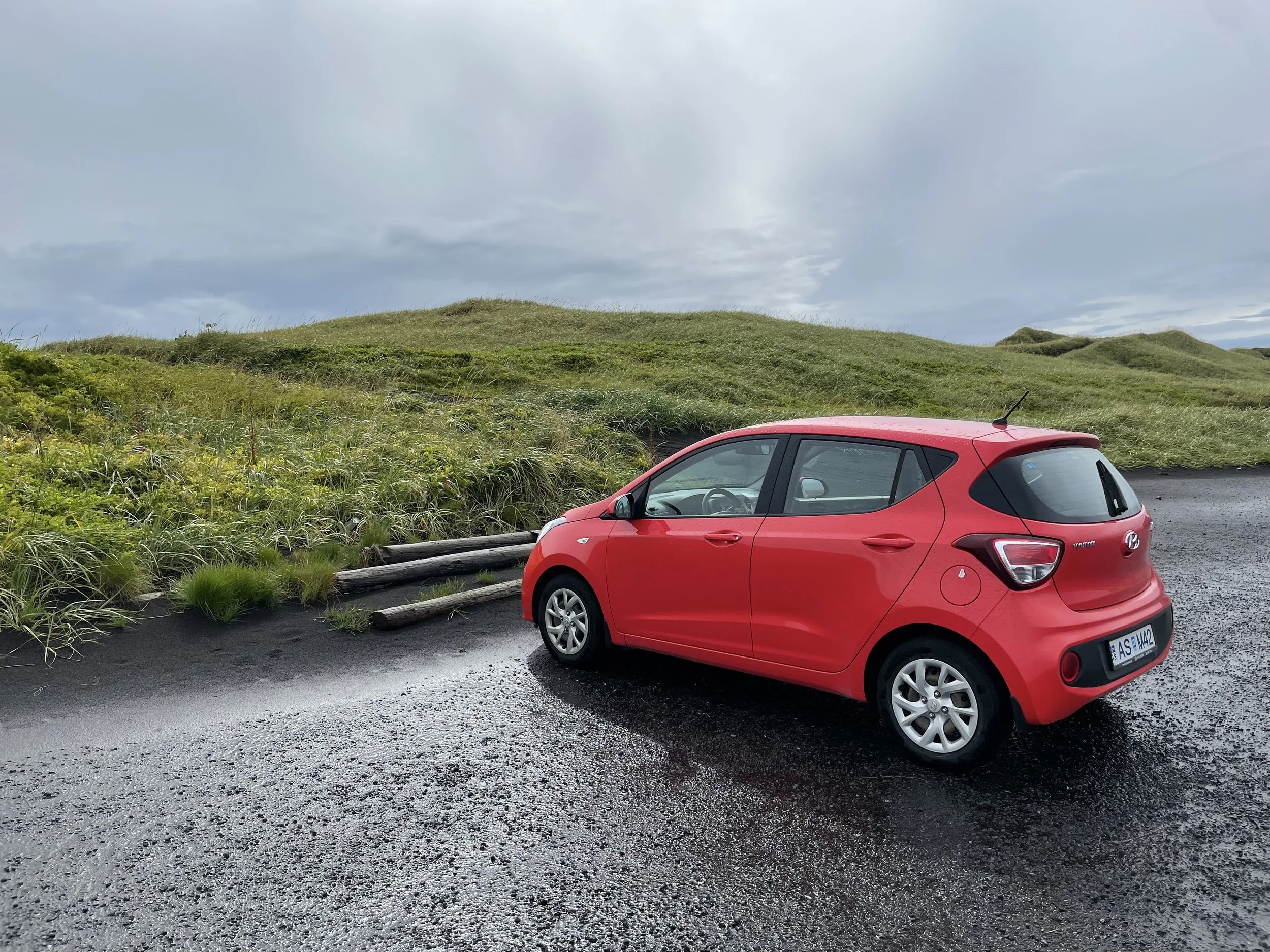 In an industrial area North of Reykjavík, we picked up the keys to our car- a bright red Hyundai i10. The car was accompanied by a large warning sticker saying that damage due to volcanic ash was common and explicitly not covered. Not something you see every day.