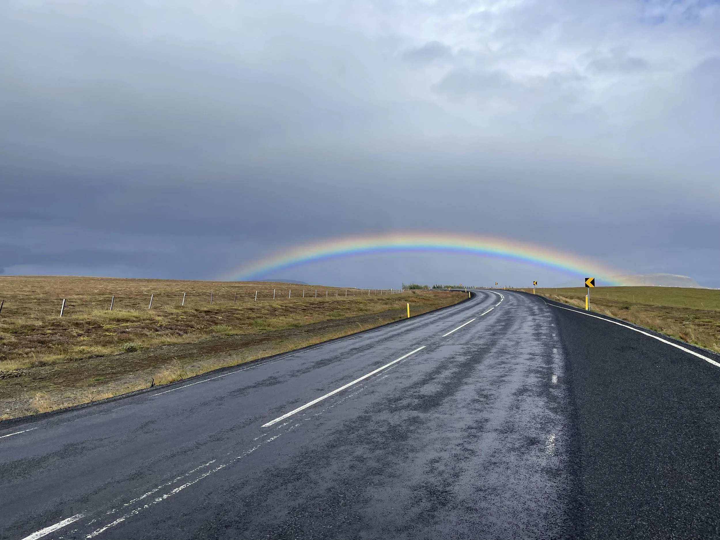 The rain began to let up just for a moment, and an incredible rainbow appeared across the horizon. Seeing the opportunity, we quickly pulled over to grab some photos. I also attempted to fly my drone, but a gust of wind promptly shot it straight back into the ground. Aerial photos would have to wait.