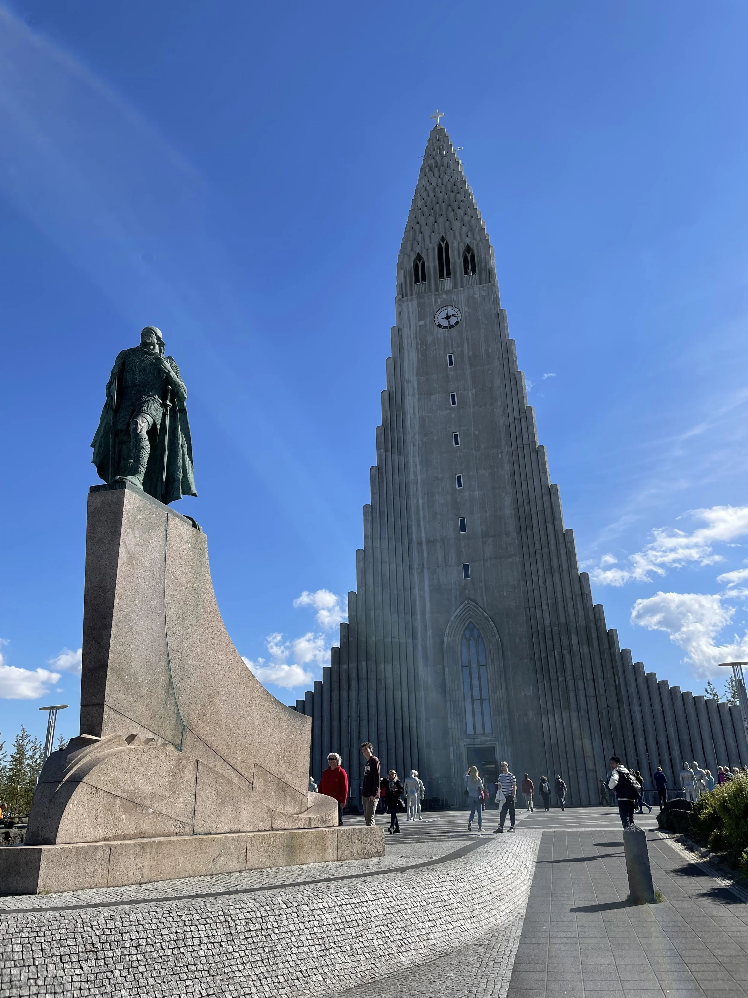 Standing proudly in front of the church was a statue of Leifur Eiríksson, the famous viking explorer that was the first European to arrive in North America. The statue was a gift from from the United States in 1932, and actually predates Hallgrímskirkja by more than 13 years! The church was built in 1945 and was designed to resemble the mountains and glaciers across Iceland.
