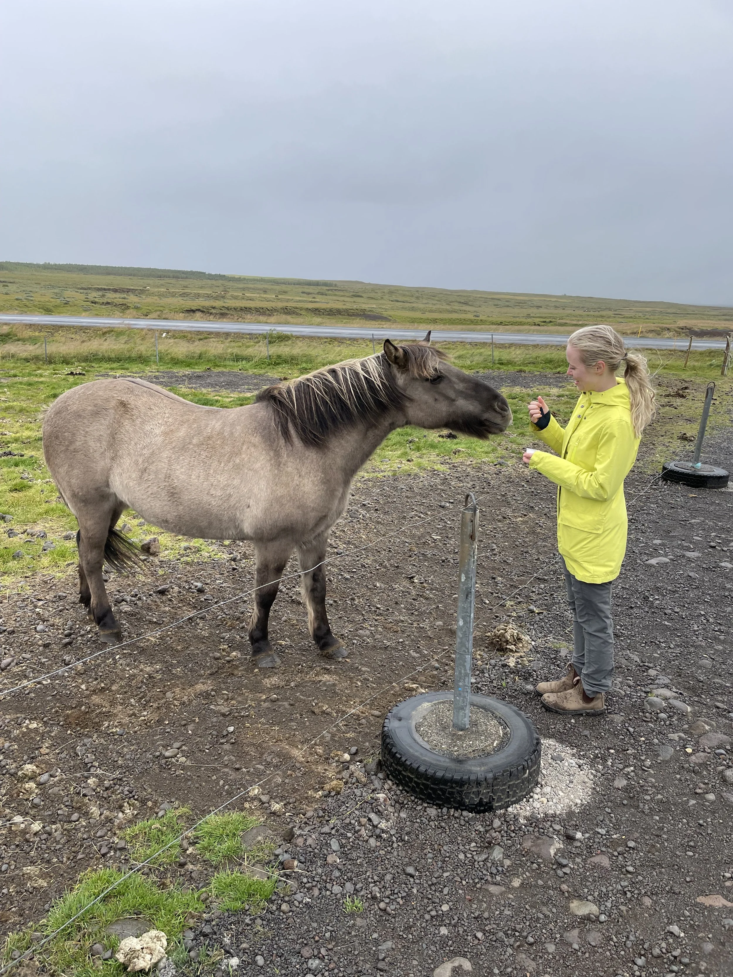 Along the route back, we began to see more and more of Iceland’s most well-known animal: the Icelandic Horse! We saw fields of pony-sized horses grazing throughout the countryside, hundreds of horses on a single stretch of highway. The best moment, however, was when a large sign displayed the invitation “Pet Icelandic Horses!”. Too enticing of an offer to refuse.