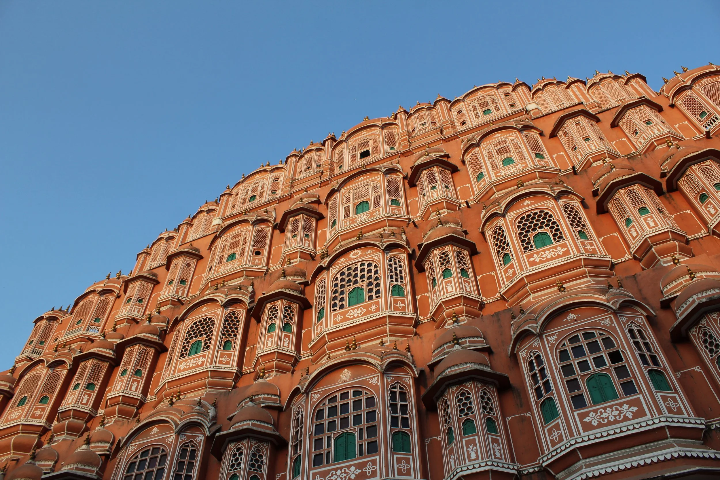 After a bit of downtime at the hotel, I set out on foot, weaving through the lively streets of Jaipur. The air buzzed with the constant honking of rickshaws and motorbikes, while vendors lined the sidewalks vying for attention. After a short walk through this sensory overload, I arrived at the breathtaking Hawa Mahal, better known as the Palace of the Winds. Its honeycomb façade stood tall and delicate, like a carved rose-colored screen. Built in 1799, the palace was created as an extension of the royal City Palace to allow the women of the royal household (who followed purdah, the practice of seclusion) to discreetly observe street festivals and daily life below without being seen.