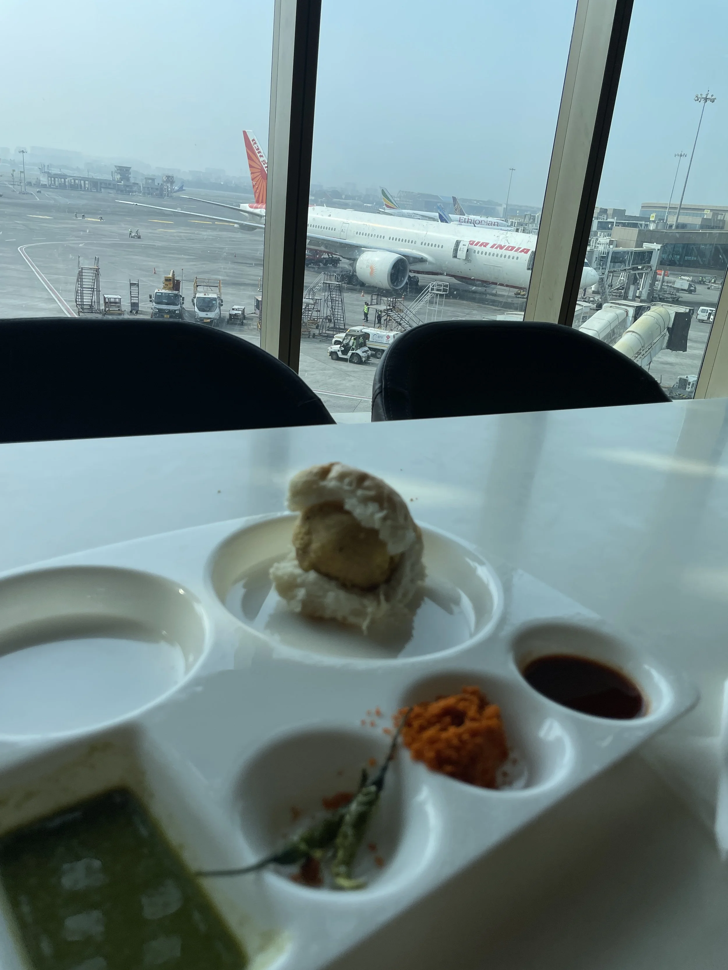 One experience I thought I’d miss out on was enjoying vada pav, a classic Mumbai street food made of a deep-fried potato dumpling nestled inside a soft bun, accompanied by tangy chutneys and a blend of spices. But luck was on my side. At the airport, I found a stall serving the iconic snack, and I enjoyed it alongside a paneer sandwich and a saffron latte. It was an incredible way to indulge before my flight to Delhi.