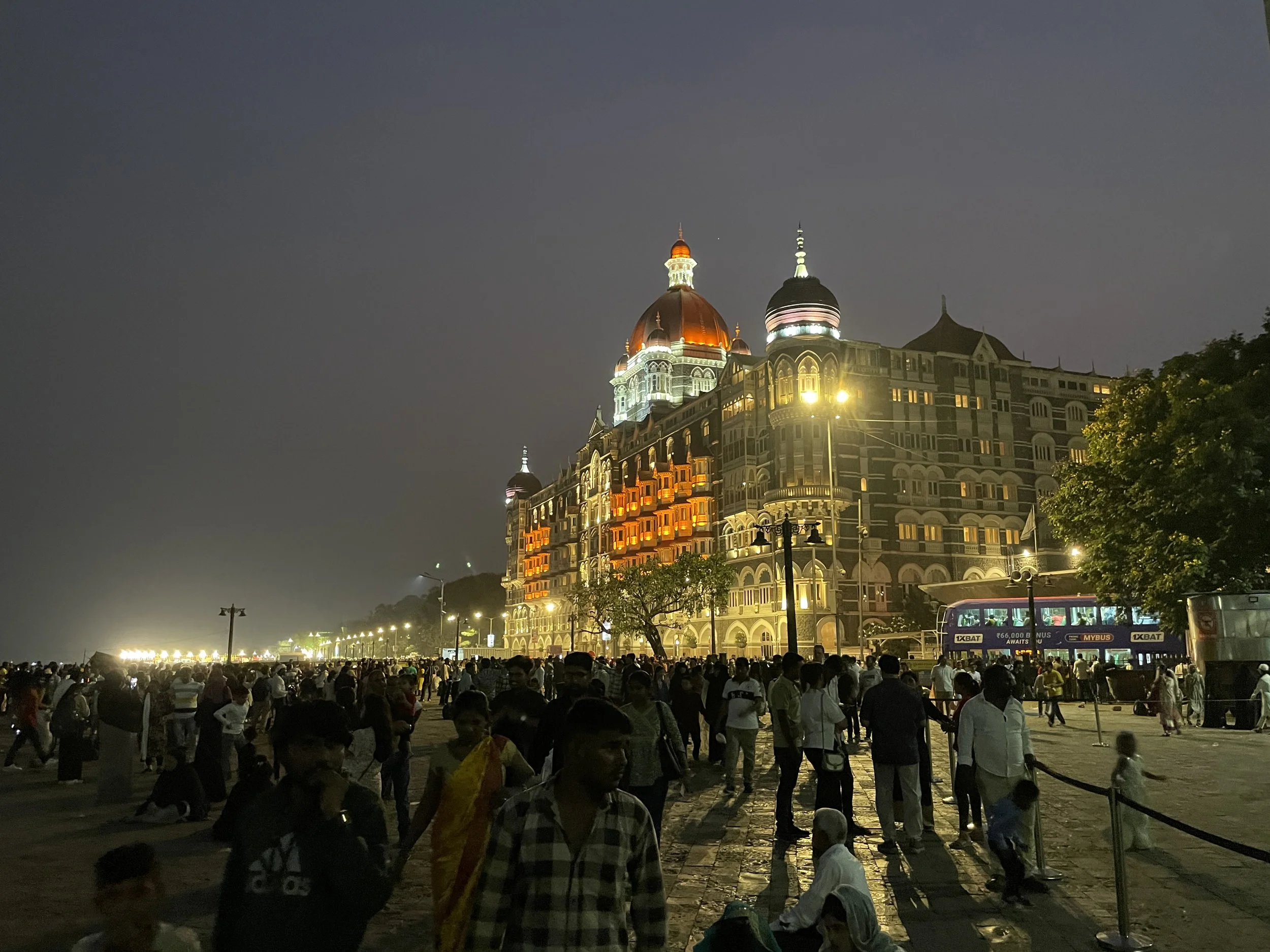 As I made my way back to the neighborhood around my hotel, I noticed the Gateway of India illuminated in the evening glow, hinting at a special event or show taking place. Just beside it stood the iconic Taj Mahal Palace Hotel, a true symbol of Mumbai's history and grandeur. Built in 1903, the Taj is an architectural masterpiece. From hosting dignitaries and celebrities to surviving the devastating 2008 terrorist attacks, the Taj's story is woven into the fabric of Mumbai itself. Intrigued, I couldn’t resist stepping inside for a drink, soaking in the opulence of its lavish interiors and the hotel’s storied past.