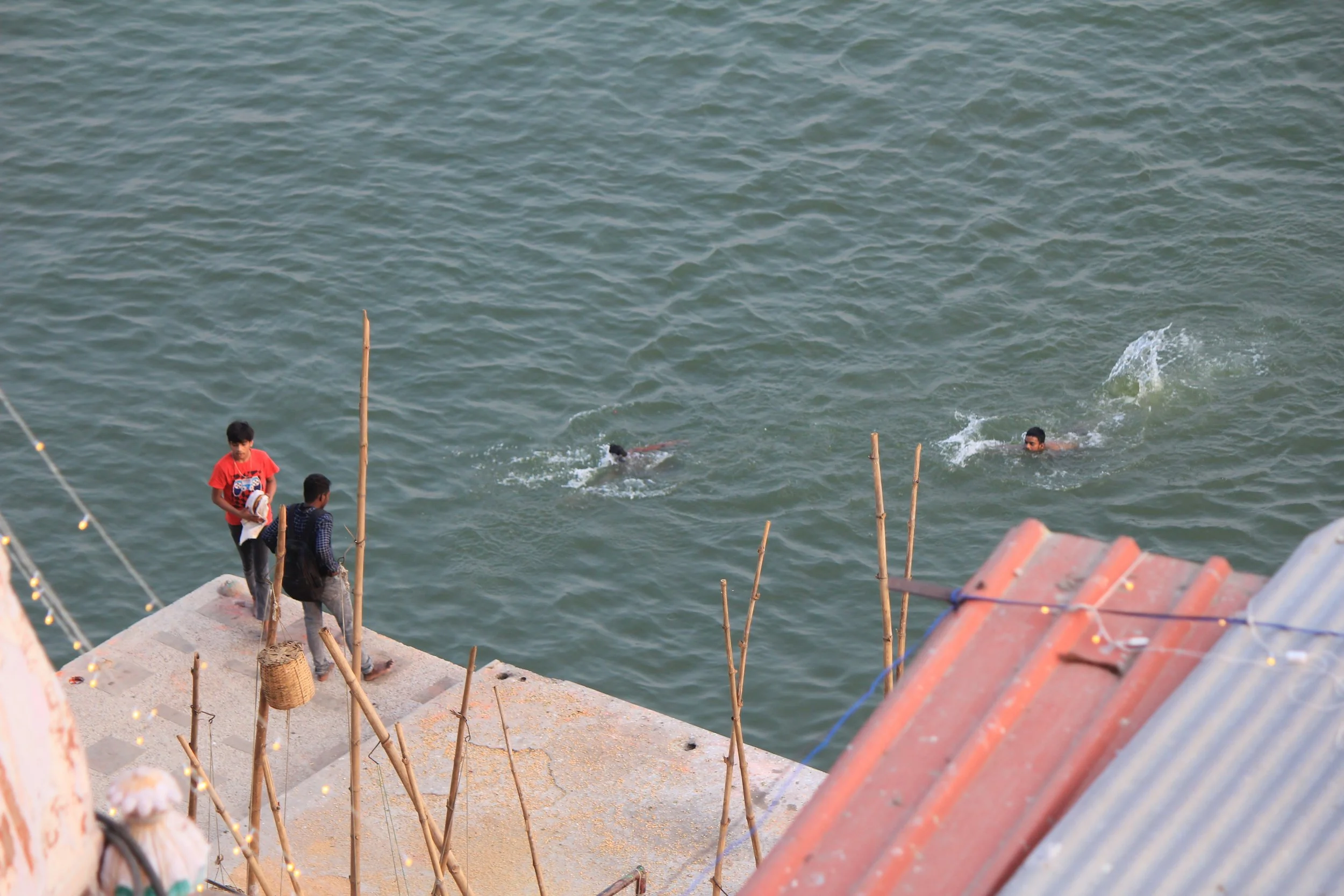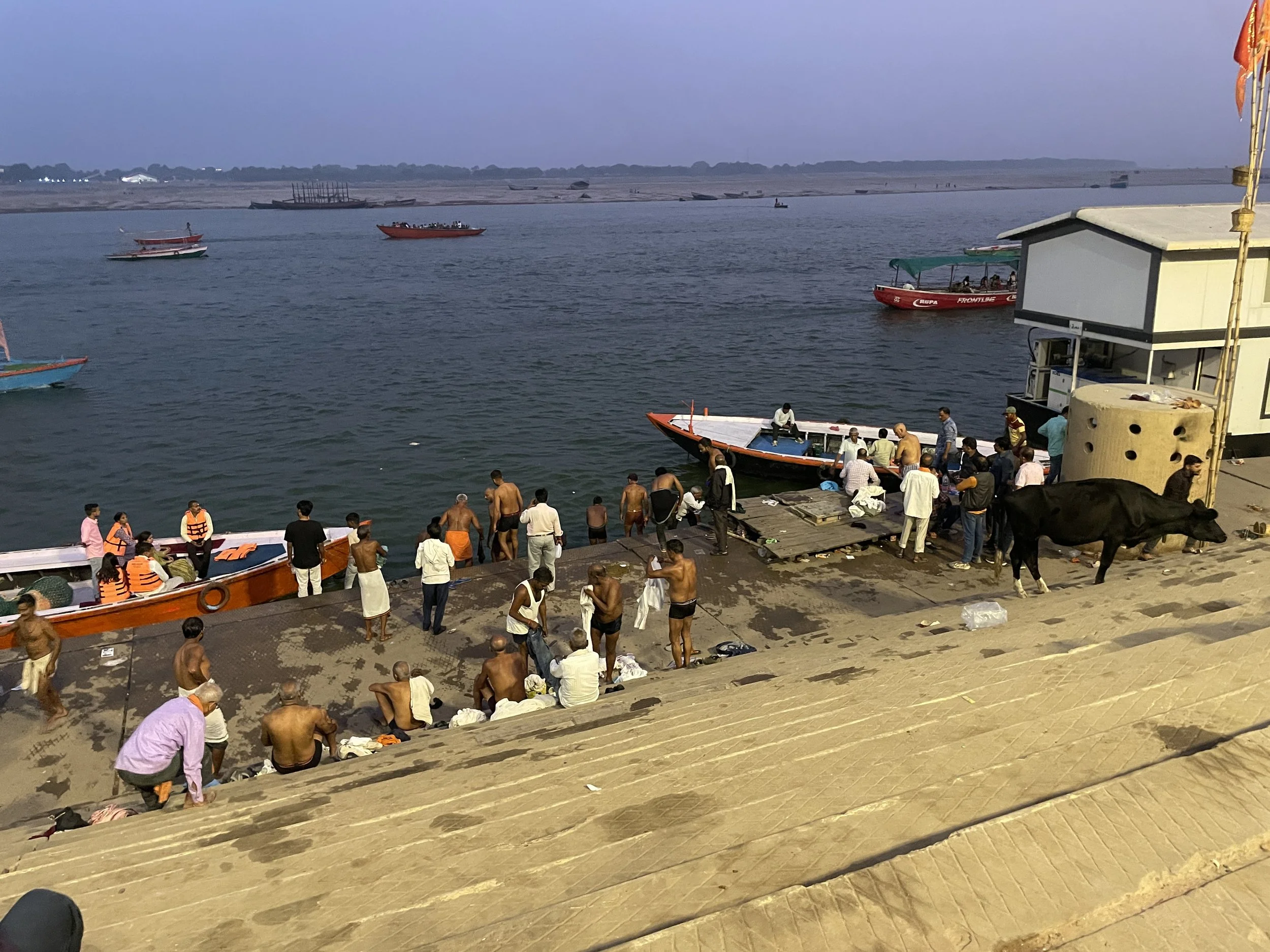 Later, while walking along the banks of the Ganges, it was impossible not to notice the murky, brown water lapping at the stone steps. Trash and offerings floated near the edges, yet people continued to wade in without hesitation. Some bathed, others swam, and a few stood still with their hands pressed in prayer.