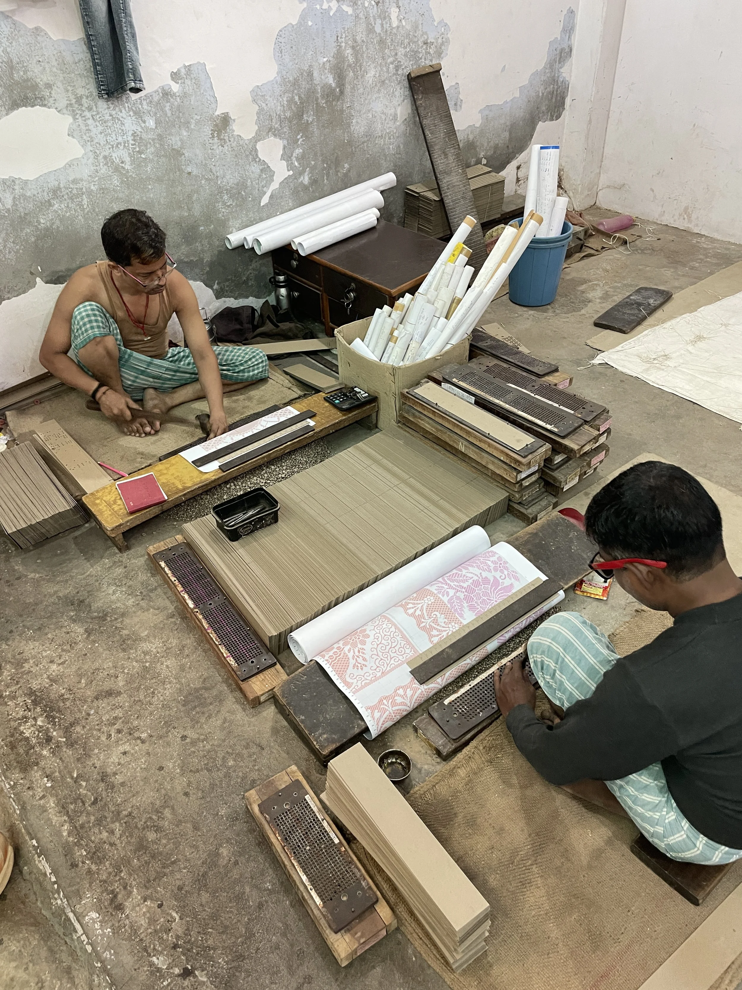 Upon arriving, we were warmly welcomed with a traditional bindi, the small red dot gently placed on our foreheads as a symbol of blessing and respect. The bindi, nestled between the eyebrows, is said to represent the "third eye," a point of spiritual insight and wisdom in many Indian traditions. Then, we were treated to chai and delicious, crispy pakoras- perfectly spiced and paired with the sweet, fragrant tea. Afterward, we were led into a lively block-ink workshop, where we learned to create designs on fabric alongside skilled artisans from local communities. It was a hands-on experience that connected us to both the tradition and the people behind it.