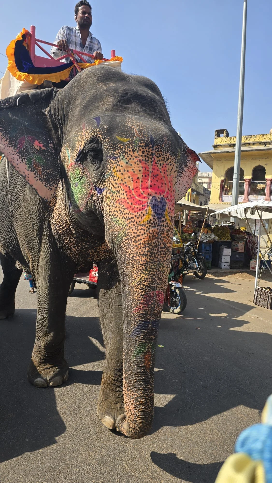 We then made our way to the Amer Fort by rickshaw, the only real option for navigating the narrow, winding streets that led up toward its gates. Along the way, we passed elephants with painted trunks lumbering through the streets, their handlers preparing them for wedding processions.