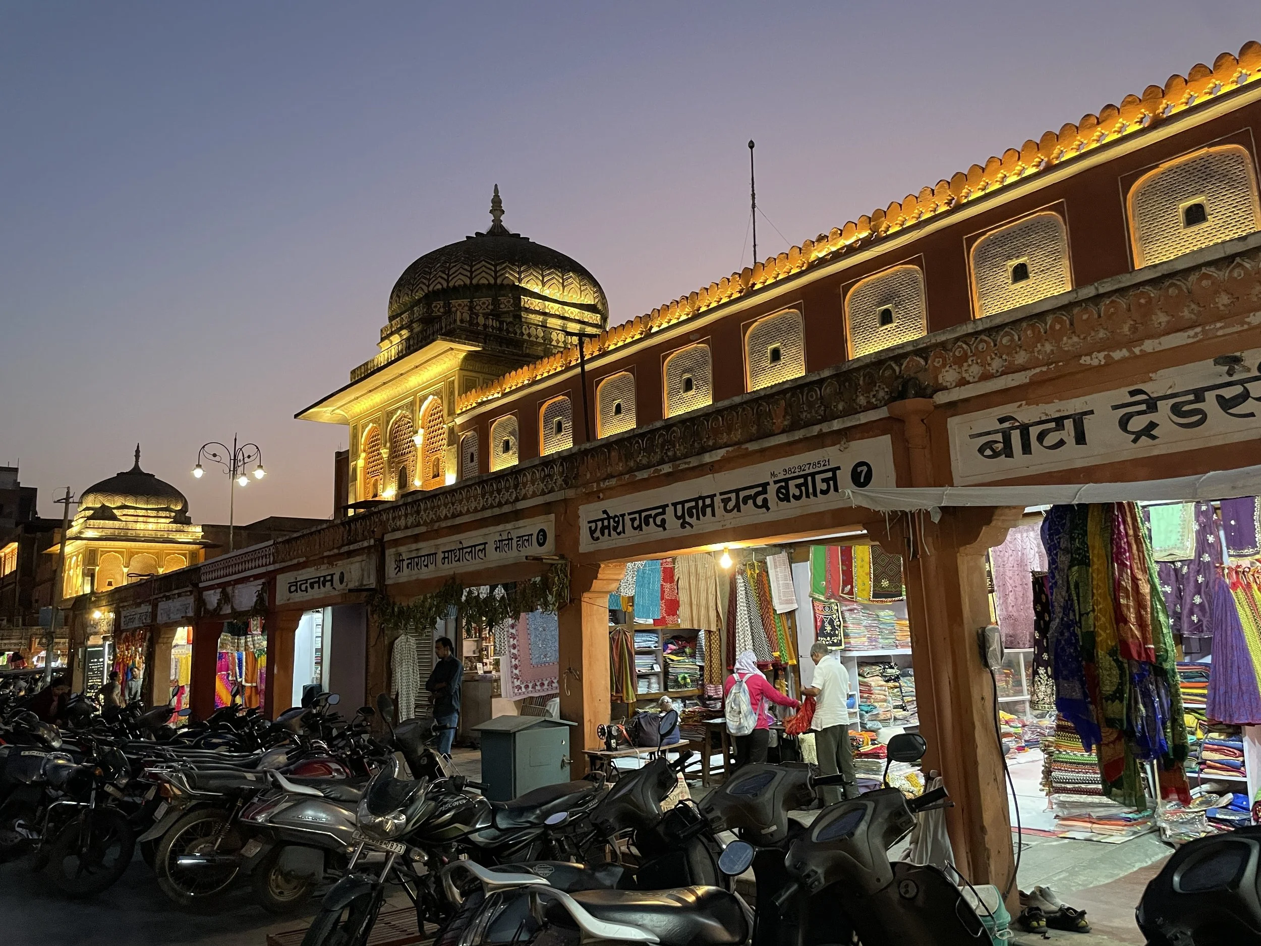 After spending some time learning about the business and picking up a few beautiful textiles, we set off on our next stop, Jaipur. As we approached the city, the Jaipur revealed its iconic hue- buildings bathed in soft pink tones, a legacy dating back to 1876 when Maharaja Sawai Ram Singh II painted the city to honour the Prince of Wales. This thoughtful gesture transformed Jaipur into the "Pink City," a symbol of hospitality and heritage.