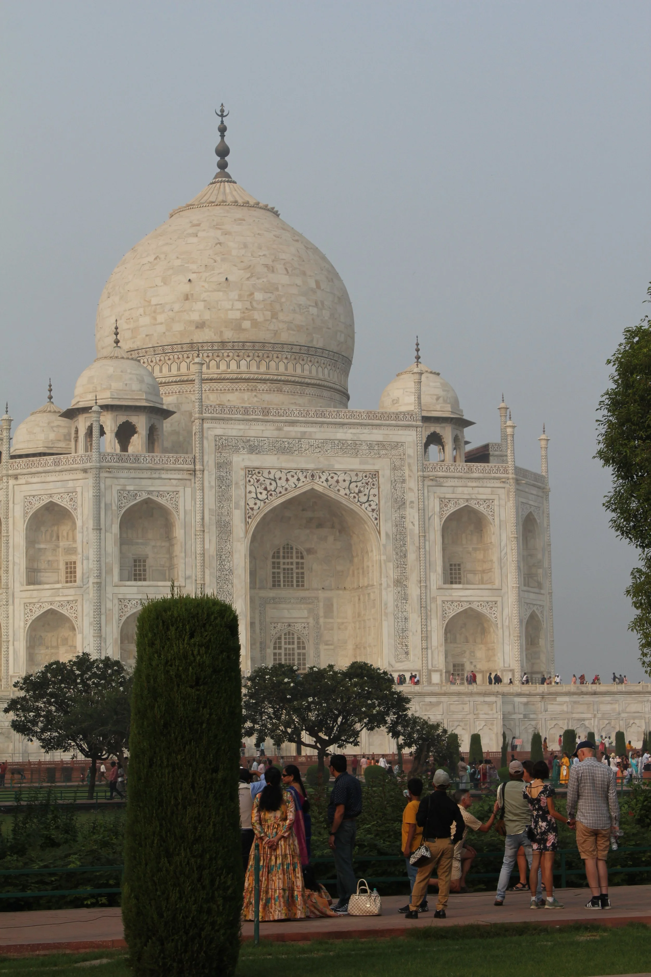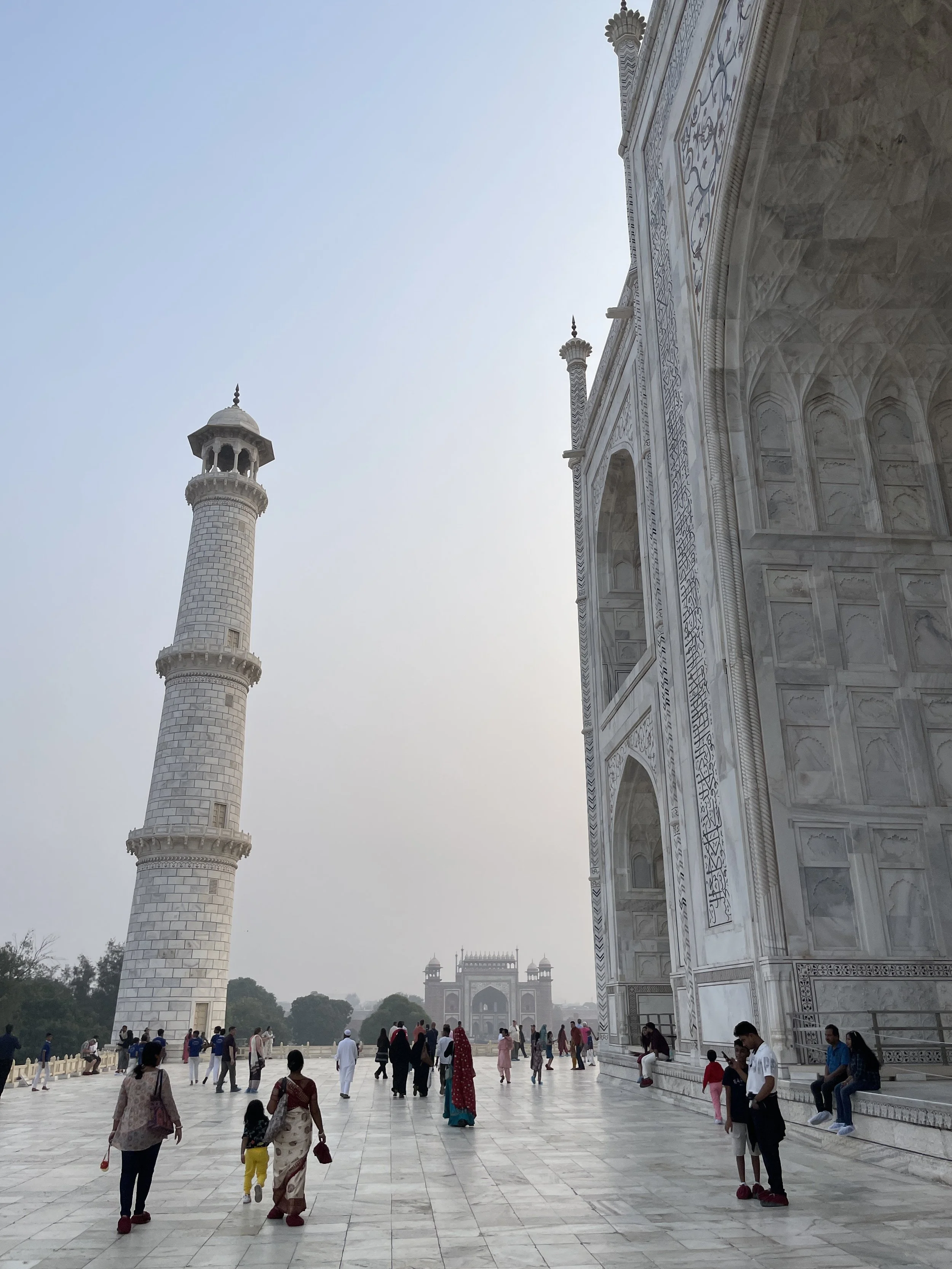 And then, stepping through the Great Gate, the Taj Mahal finally comes into view. So perfect and still against the hazy sky, it almost looks fake, like a green-screen backdrop dropped into place. It felt surreal, too flawless to be real.