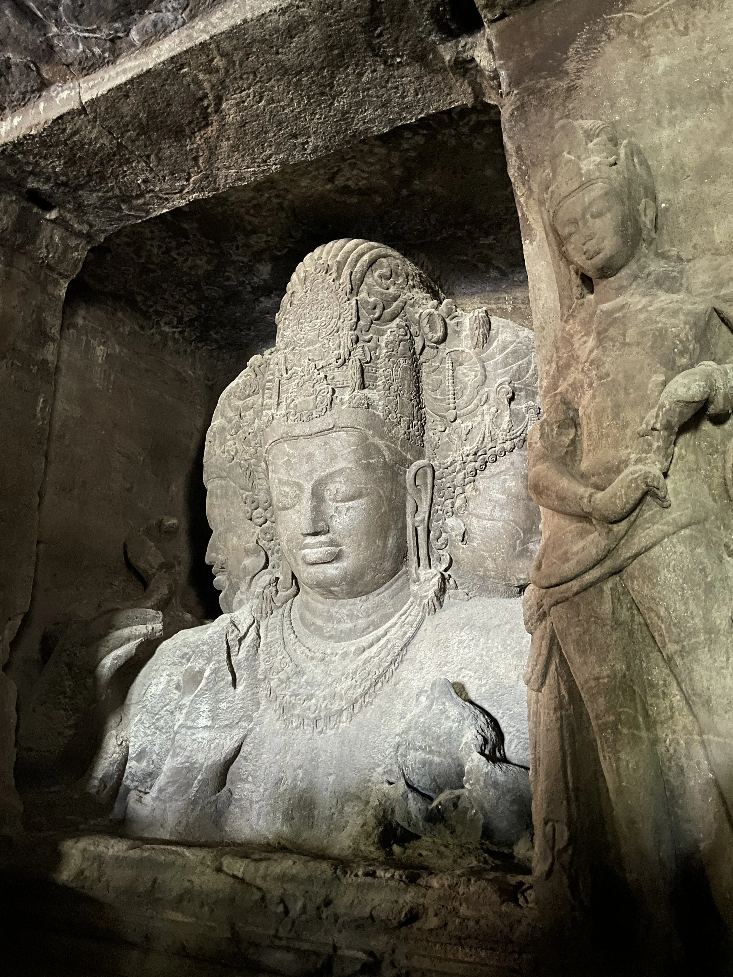 Yet, not all of the caves had survived untouched. In some chambers, defaced sculptures bore the scars of the Portuguese soldiers who once used the site for target practice in the 17th century. Noses, arms, and entire faces had been shot off or hacked away. Famously, the three-headed statue of Shiva is said to have been spared because it bore a resemblance to the Holy Trinity in Catholicism.