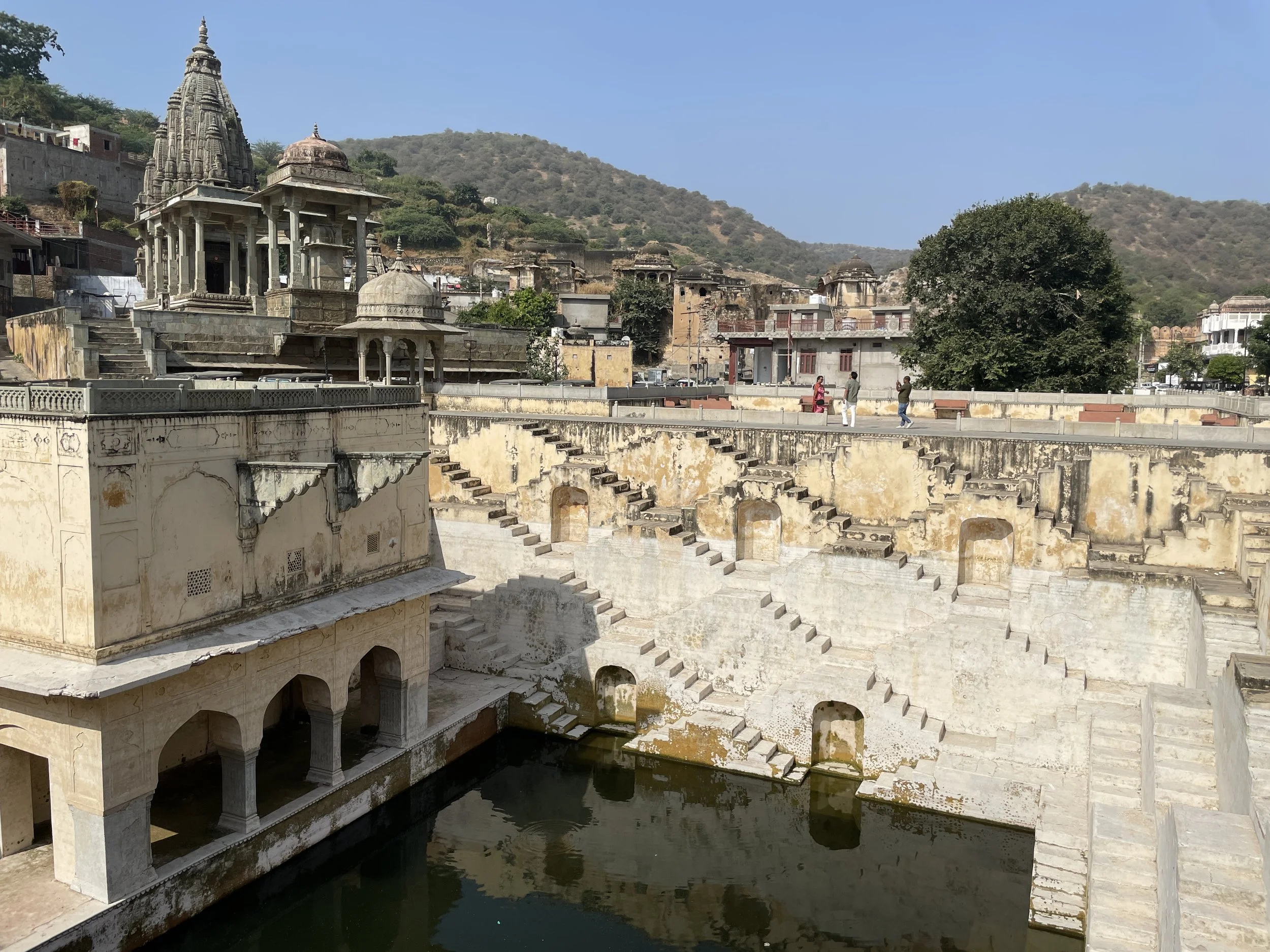 Each time we stopped, merchants appeared almost instantly, offering fans, jewelry, trinkets; anything that could be sold in a moment. The climb grew steeper the closer we got, but a traffic jam forced us to abandon the rickshaw before reaching the top. It turned out to be a gift in disguise, as we had time to see Panna Meena ka Kund, the centuries-old stepwell carved with perfect symmetry.