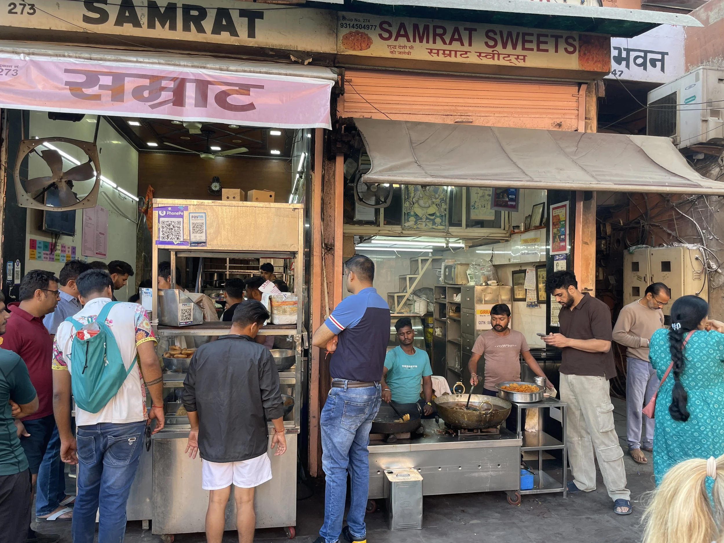 Still under darkness, we arrived at Gulab Ji Chai Wale, a famous shop for chai tea. It was barely past 6 a.m., but a large crowd had already formed. The shop proudly featured photos of the owner serving chai to Indian Prime Minister Modi, and French President Marcon. I was handed a piping hot cup of chai in clay cup, and it was incredible. I stood at the roadside, sipping slowly, gazing up at the faint stars still clinging to the early morning sky. When we were done, we tossed our cups into a bin where they shattered on impact; destined to be melted down and reshaped into new ones. A simple, ingenious cycle of sustainability.