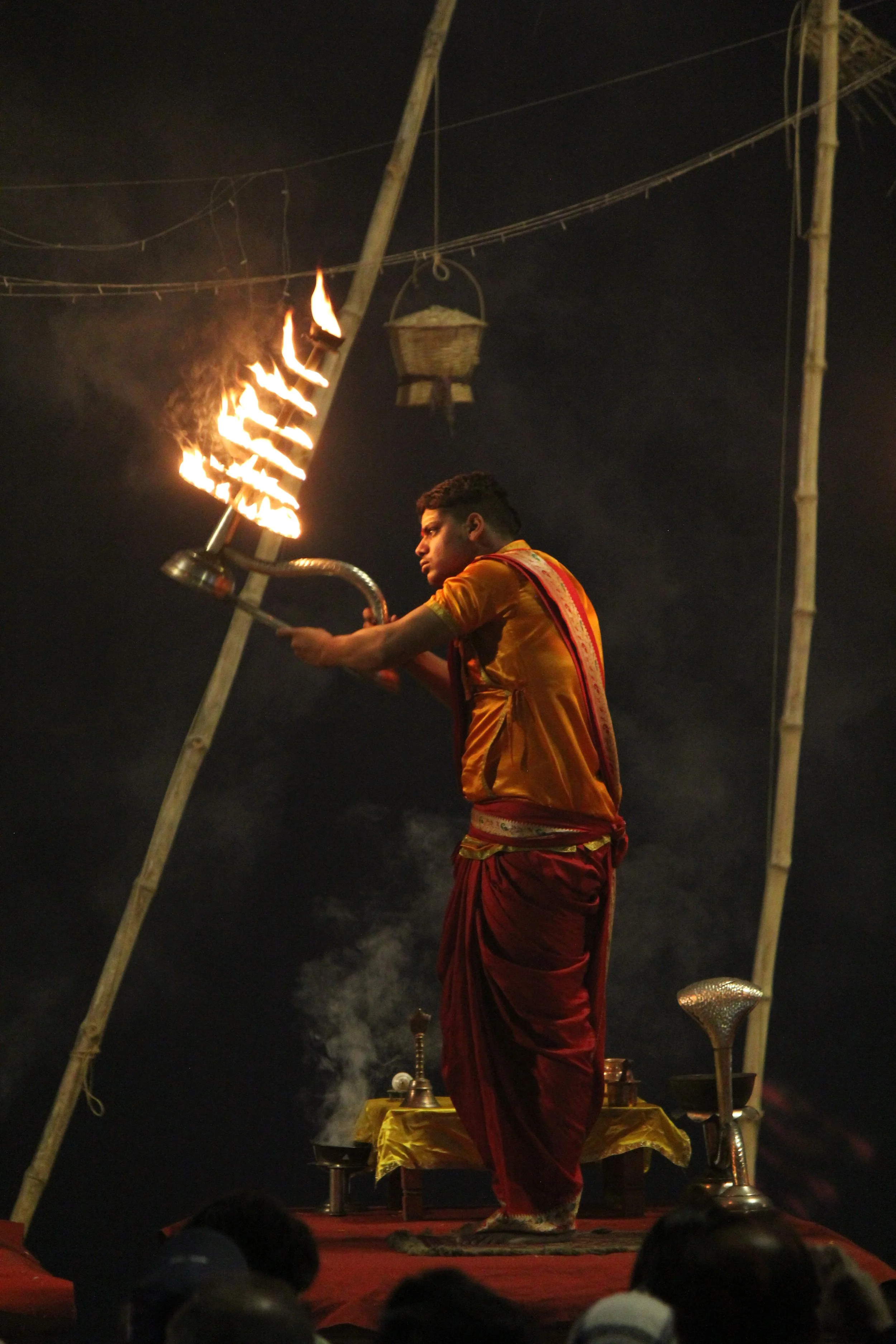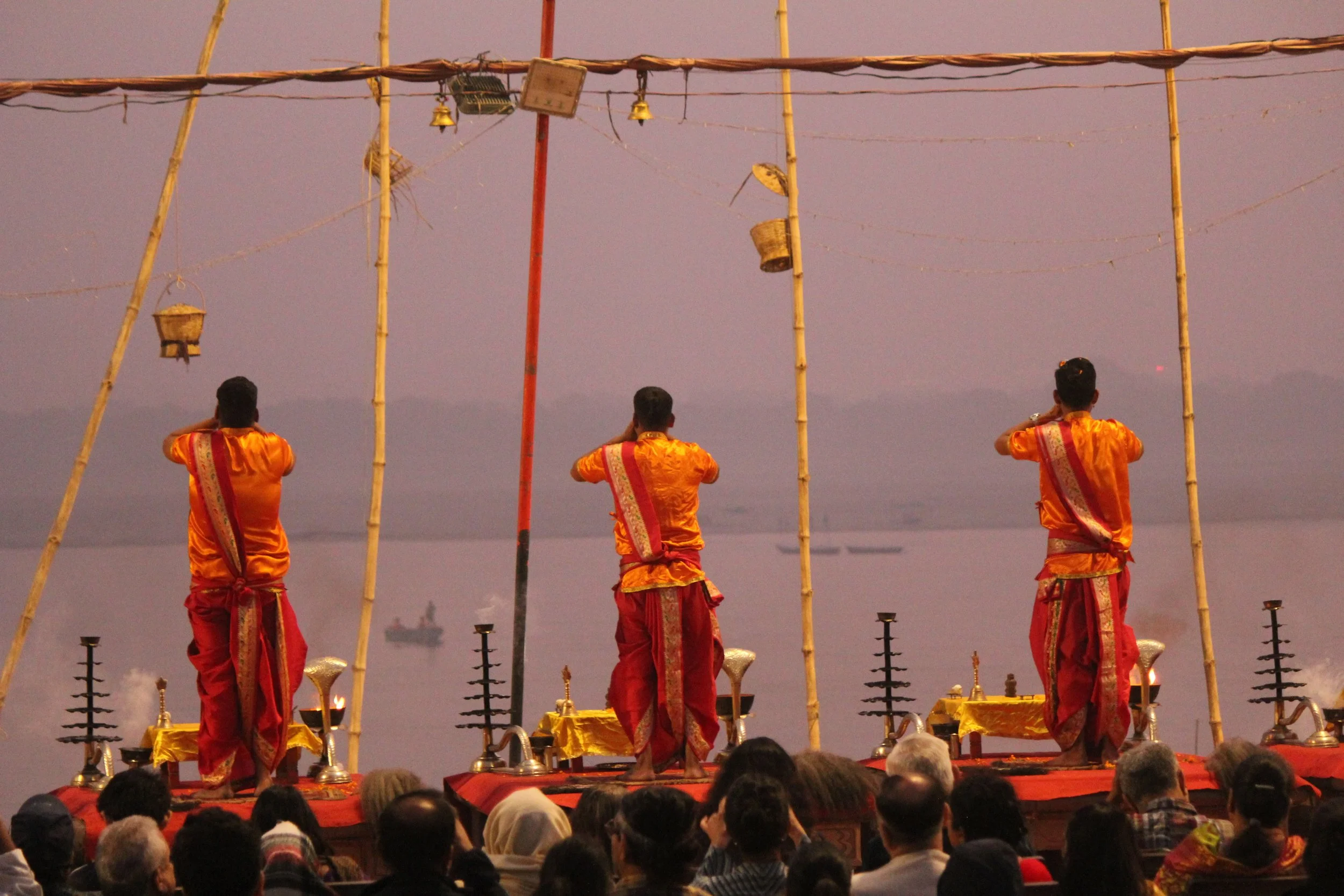 Waking up just before sunrise, we returned to the banks of the Ganges, eager to witness a morning ceremony. The atmosphere was calmer, with far fewer people gathered. A handful of devotees, dressed in vibrant orange robes held small fire-lit lamps that flickered softly in the early light as they began the ceremony.