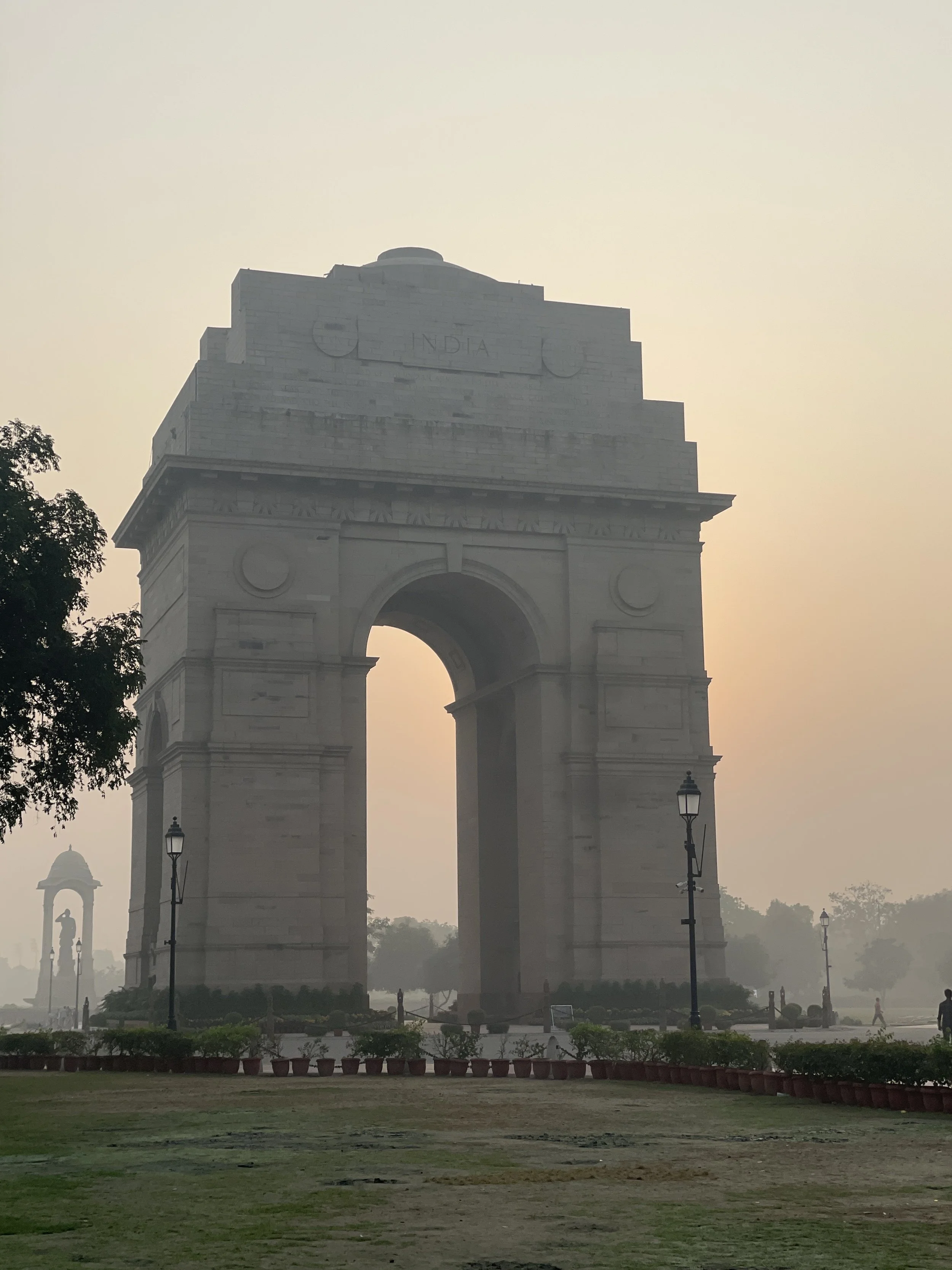 Bright and early (I assume it would have been bright, if it wasn’t for the smog), we made our way through quiet streets lined with polished homes and government buildings to the India Gate, a grand war memorial standing tall in the heart of Delhi. Even shrouded in haze, the monument was striking; its towering archway a solemn tribute to the thousands of Indian soldiers who lost their lives in World War I. The surrounding lawns, dotted with school groups, sleeping dogs, morning walkers and chai vendors gave the place a quiet, steady pulse- like the city was slowly waking up around it.