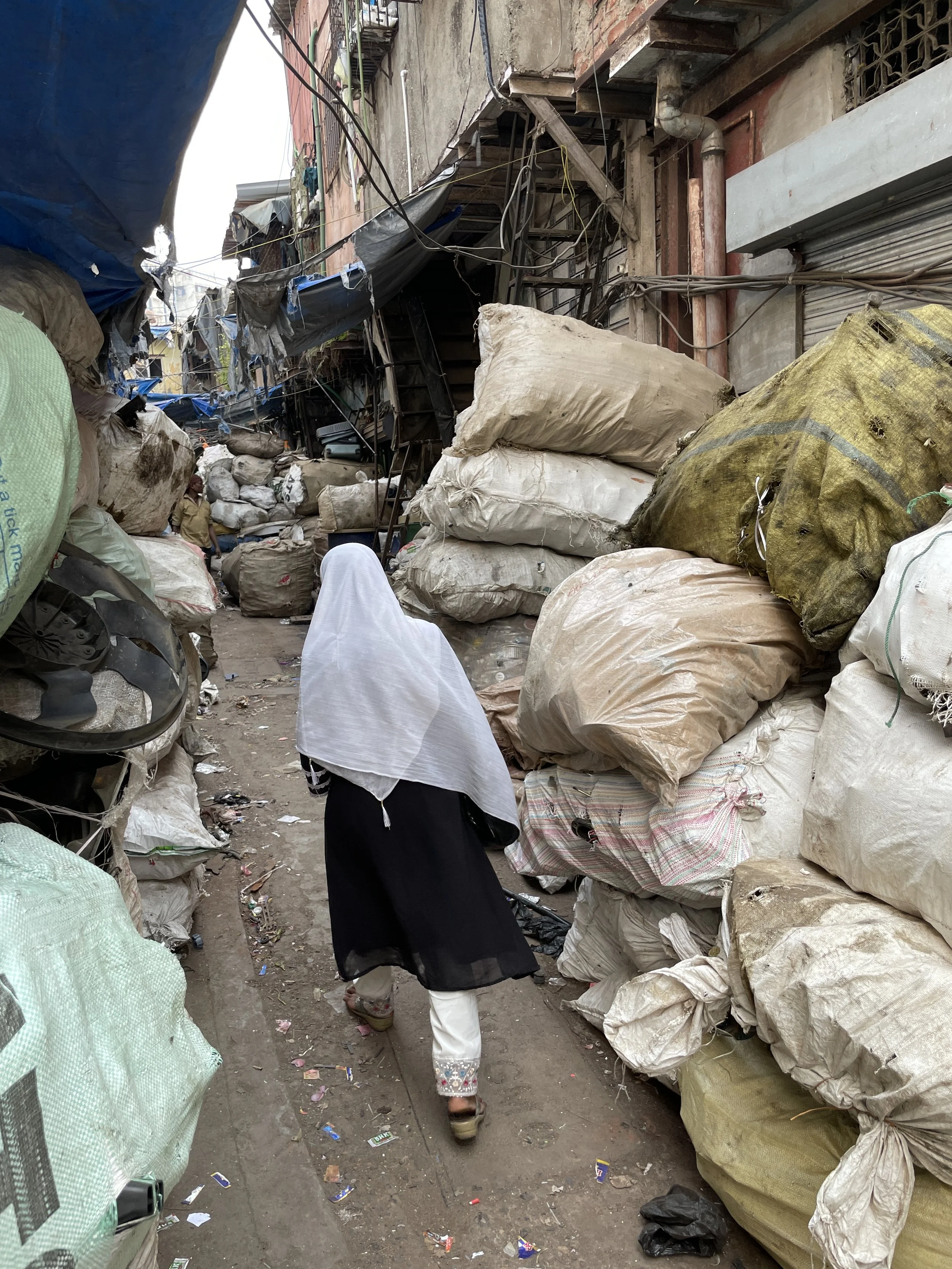 I was greeted by my guide, Pooja, the first woman tour guide for the slum. She was born and raised in the area, and she welcomed myself and two other young travellers into her neighbourhood. Walking through the narrow, bustling lanes of Dharavi felt like stepping into a world of confined intensity. Everywhere I looked, people were hard at work, creating products that would make their way to markets around the world. Massive bags of imported plastic were cut open and sifted, with workers finding the best pieces to be melted down into something new.