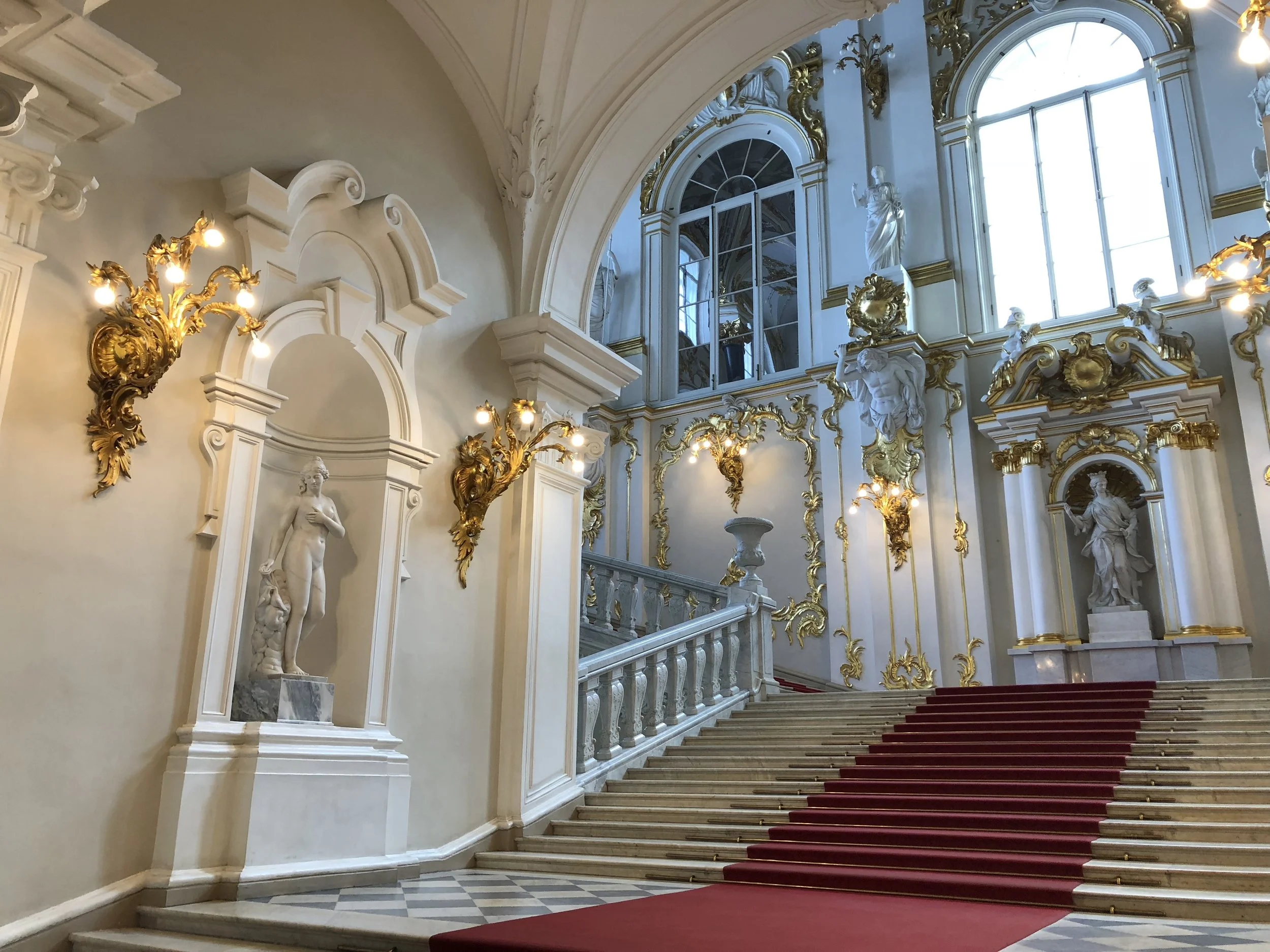 My day in St. Petersburg began with a drive from a port in the Vasileostrovsky District to the Winter Palace, the home of Russian royalty until the Russian Revolution in 1917. When I started to explore inside the Winter Palace, it became clear how incredibly large the building is. With over 1500 rooms, it is estimated that it would take 11 years to look at each exhibit for one minute. Words truly can’t describe the extravagance of the palace. Filled with masterpieces from artists such as Rembrandt and Botticelli, the museum also has historical artifacts from all over the world (including Egyptian mummies and Greek sculptures).