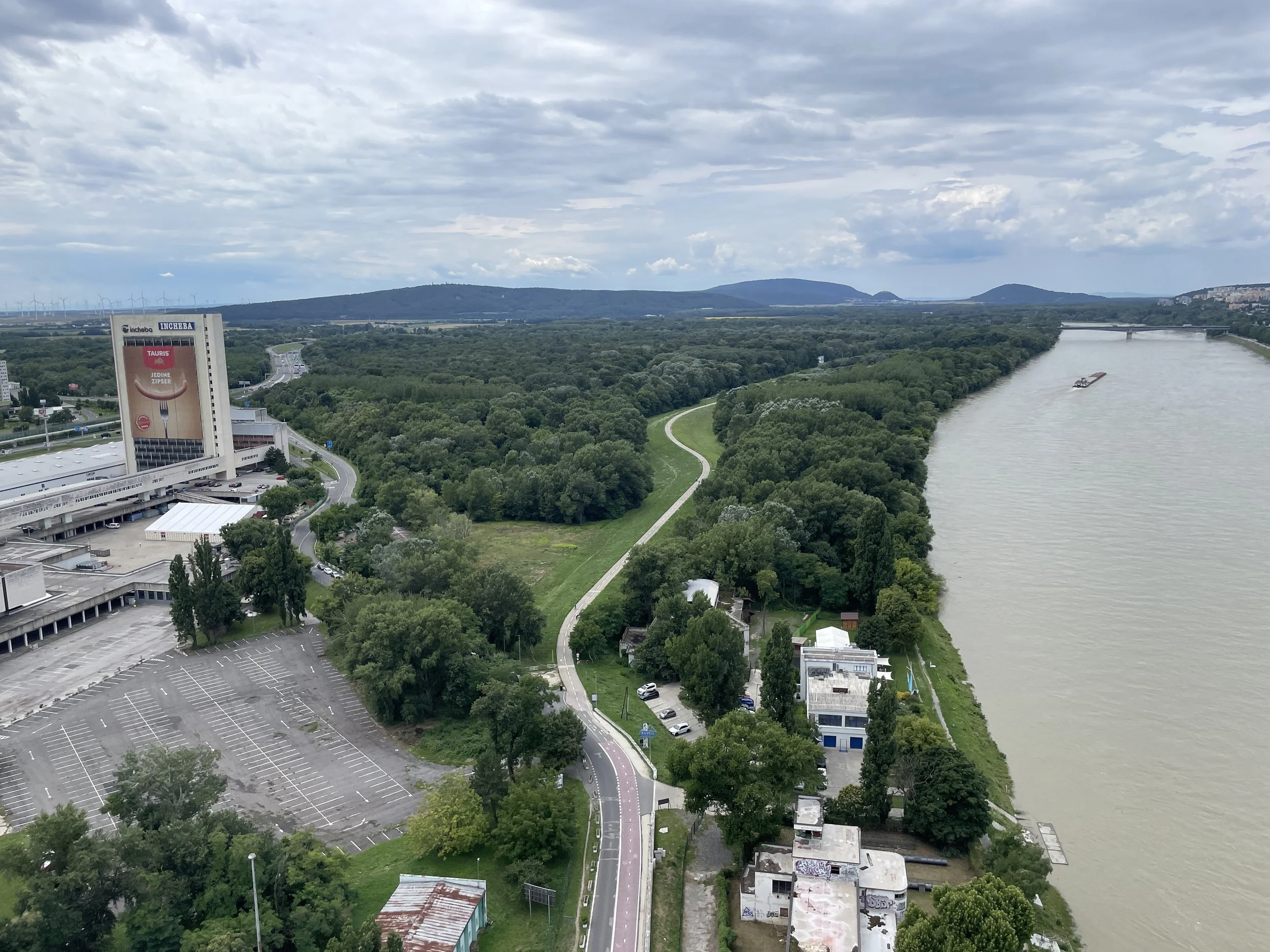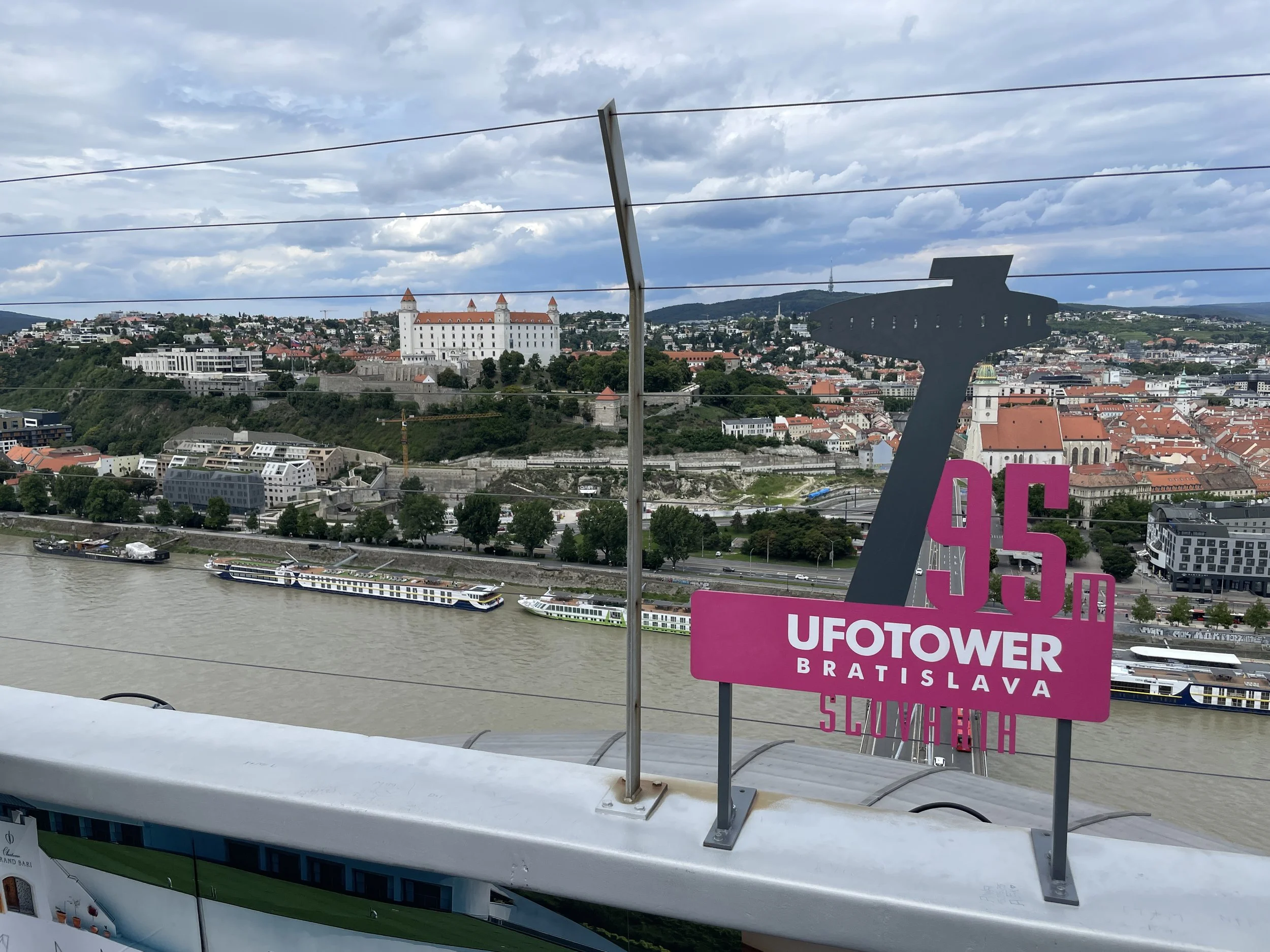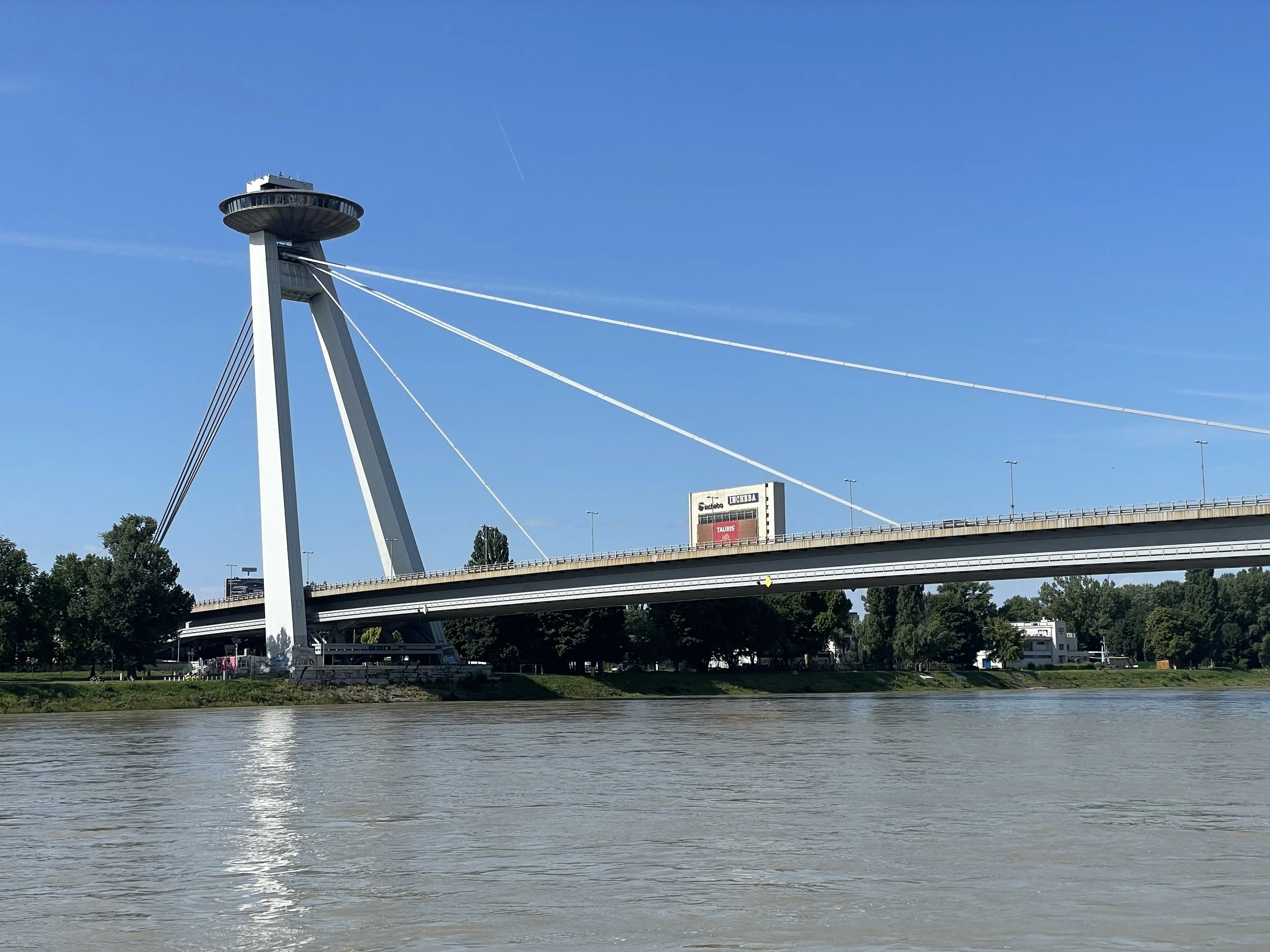 After our hillside break, we made our way back toward the Danube, crossing the river via the Most SNP (Bridge of the Slovak National Uprising). The real highlight of the bridge is the UFO Observation Tower perched atop it.