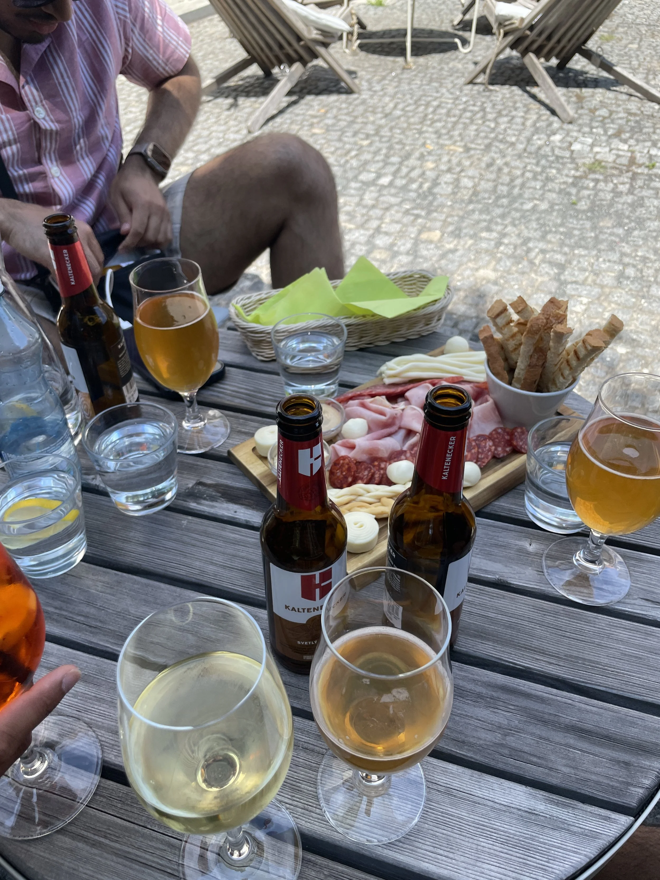 Walking back down the hill, we paused for a quick snack of Slovakian charcuterie, sampling local meats, cheeses and a cold beer. We were about halfway down the hillside, tucked into a quiet spot among the trees. The forested slope provided a peaceful contrast to the city below, and for a moment, we were completely alone. Just the rustle of leaves, the distant hum of Bratislava below and our little picnic. It felt like a private pause in the middle of a busy day, a chance to savor both the flavors and the calm of the surroundings.